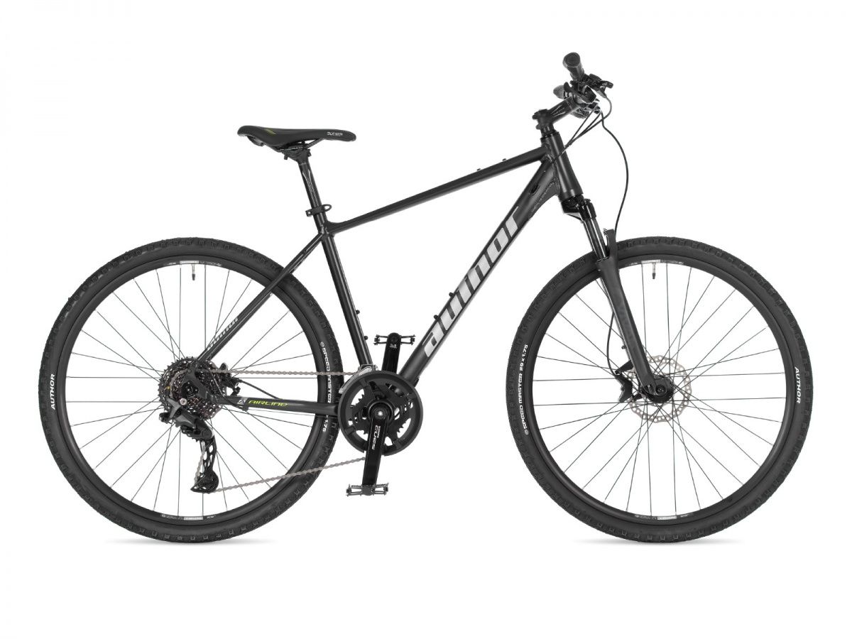 Zlatý střed v nabídce sportovních krosů naší značky, to je dlouhodobě jeden z nejoblíbenějších modelů - Author Airline. Klasický představitel nové generace tzv. „SUV“ mezi koly, což jsou vysoce univerzální kola na úrovni 29“ horských kol a klasických krosových. Pojem SUV byl převzat z automobilového průmyslu, kde označuje sportovně užitkové vozidlo. Přesně tato definice se dá uplatnit u této kategorie i v cyklistice. Je charakterizována použitím robustnější odpružené vidlice převzaté z horských kol, plášti s univerzálním vzorkem a střední šířkou a spíše uvolněnou kratší geometrií rámu. Samozřejmostí jsou hydraulické kotoučové brzdy, které plní svoji funkci výborně v každých podmínkách. Univerzálnost předurčuje i řazení Shimano Cues s klasickým dvojpřevodníkem a 10 rychlostmi vzadu. Pohodu a komfort tohoto všestranného stroje zaručí gelové sedlo a ergonomické rozšířené gripy. Zkrátka perfektní společník na silnici, cyklostezku i lehčí terén.