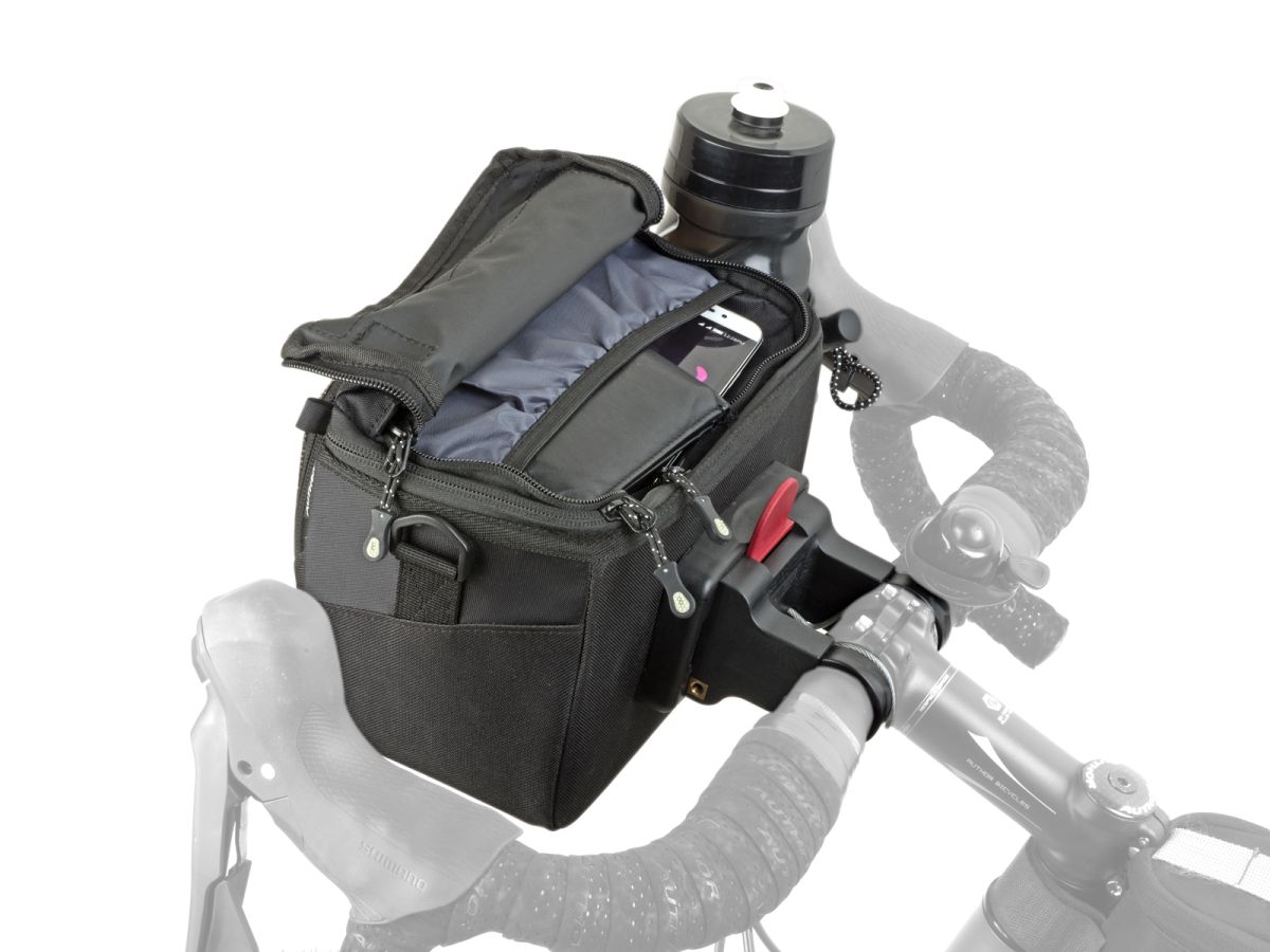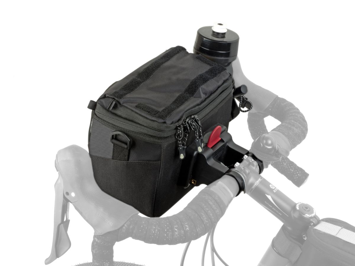 - Držák na řídítka QRA™ – univerzální objímky pro průměr 25,4 a 31,8 mm. Snadné a rychlé zacvaknutí brašny do držáku.