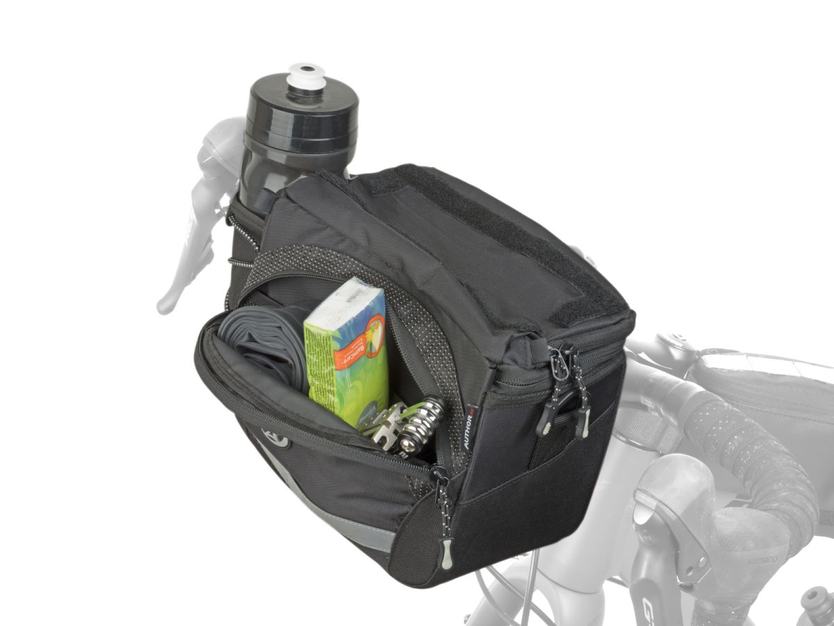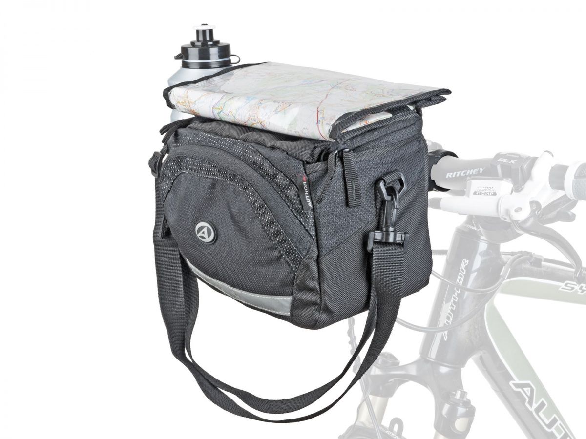 AUTHOR A-H735 je plně vybavená brašna na řídítka s držákem QRA™. Speciální pouzdro na mapu uchycené suchým zipem umožňuje jednoduchou manipulaci s mapou a čtení v ní. Na straně je umístěna universální kapsa se stahováním, do které je možné umístit láhev nebo třeba sbalit větrovku. V přední a horní části jsou samostatné kapsy na zip vhodné pro převoz nutných drobností. (peněženka, telefon, kapesníčky...). Konstrukce kombinuje panely vyztužené EVA pěnou s přizpůsobivou tkaninou pro dostatečnou pevnost brašny a ochranu převážených předmětů. Doporučujeme pro delší vyjížďky, výlety a cestování.