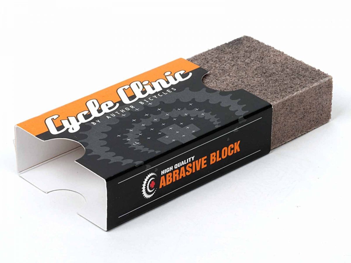 Brusný blok Cycle Clinic je elastické brusivo určené pro čištění povrchu brzdných ploch ráfků a brzdových kotoučů. Vyčištěním brzdných ploch zvýšíte brzdný výkon. Blok může být použit na suchém nebo mokrém povrchu, nebo s mýdlovou vodou. Doporučujeme požít nejprve hrubší CC N20 pro základní čištění a jemný CC N40 pro konečnou úpravu.