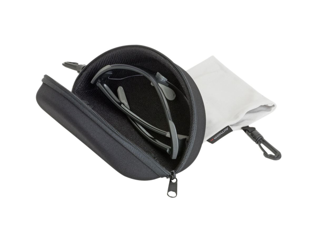 - Součástí je pevné pouzdro na zip a obal z mikrovlákna, který lze použít k čištění brýlí.
