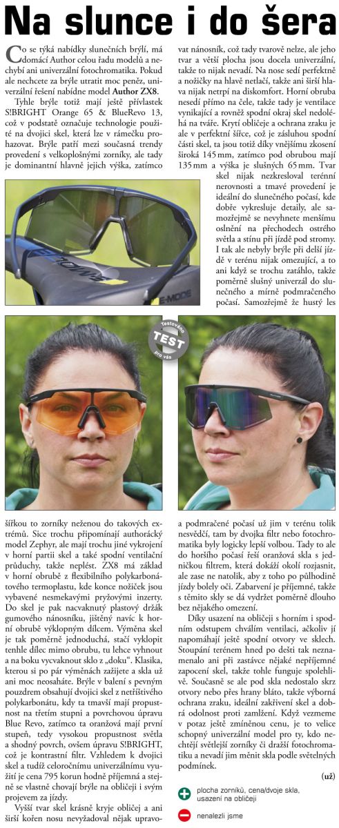 Model brýlí AUTHOR ZX8 s velmi universálním tvarem. Díky speciálnímu tvaru stranic s protiskluzovými A-slip koncovkami a A-slip sedlu nosníku velmi dobře drží na obličeji. Tento model je vhodný na většinu sportovních aktivit. Součástí jsou výměnné čočky, které vám zajistí dokonalou ochranu očí za všech světelných podmínek.