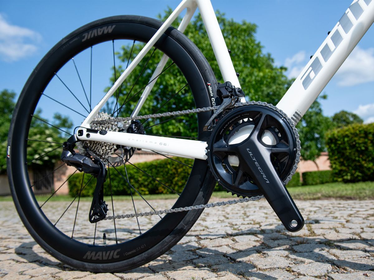 Našla své místo na trhu v kategorii, které se říká Endurance. Takto koncipované a designované karbonové rámy mají vyšší hlavovou trubku a kratší horní rámovou trubku, delší vidlici i zadní stavbu, což poskytuje vzpřímenější a kratší posed a větší tlumení vibrací. To zlepšuje pohodlí a snižuje únavu během dlouhých jízd. Samozřejmostí je užití širších plášťů, na modelu CHARISMA 66i jsou pláště od značky VITTORIA, konkrétně bezdušový model Corsa N.EXT TLR v šířce 28 mm (max. možná šířka pláště je 35 mm). O řazení se postará silničářská a zde zcela kompletní sada Shimano Ultegra v elektronickém provedení Di2 s hydraulickými brzdami ve verzi 2×12 převodů. K lehkosti a rychlosti jízdy přispívají i zapletená kola MAVIC Cosmic S 42 Disc CL UST s 42mm vysokým karbonovým ráfkem, připravená i na bezdušové použití. Standardem jsou kompletní tahy uvnitř rámu i vidlice a pevné osy vpředu i vzadu. Kokpit dodala značka FSA včetně hlavového složení, sedlo pak Prologo modelem Dimension Space.