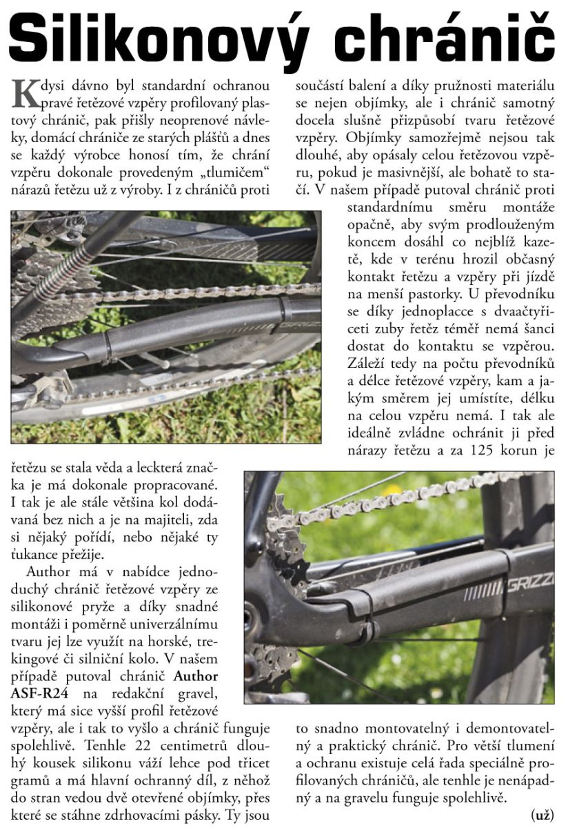 Chránič je vhodný pro většinu řetězových vzpěr jízdních kol – měkký materiál se snadno přizpůsobuje profilu vzpěry.