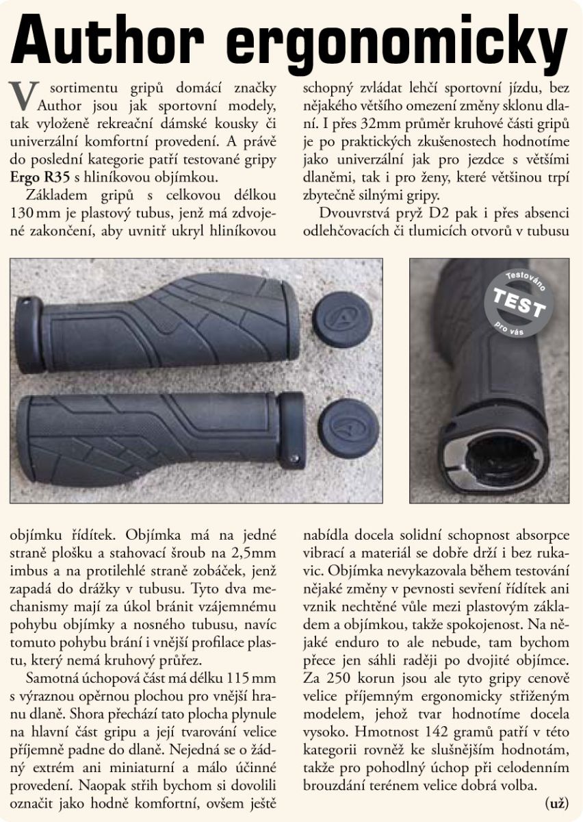 Ergonomické gripy Author Ergo R35 s objímkou z AL, navrženy pro komfortní a pohodlný úchyt i při celodenní jízdě.Ergonomický tvar.