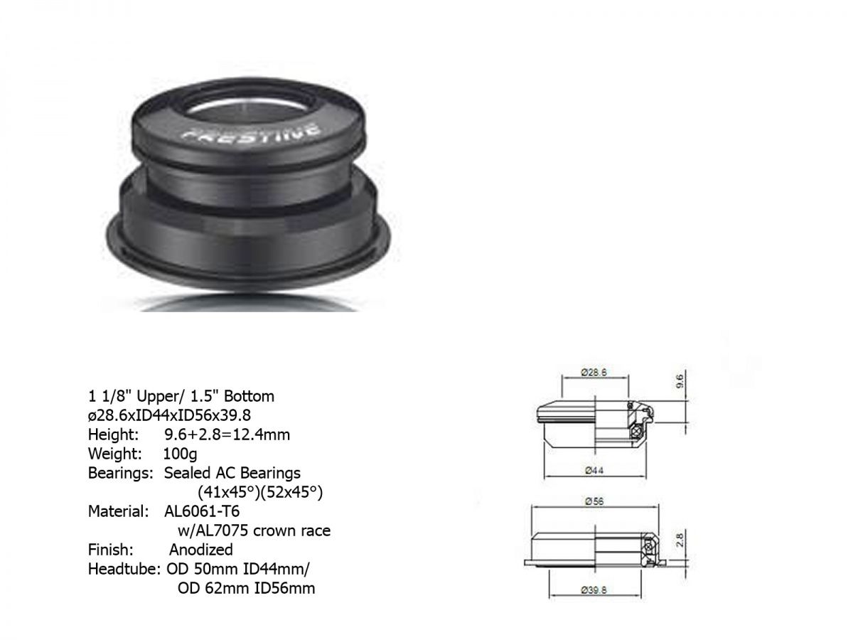 * 1 1/8" / 1,5"; horní d. 44mm / spodní d. 56mm / sloupek d. 39,8 mm * Materiál: Alloy 6061; * kuličkové ložisko