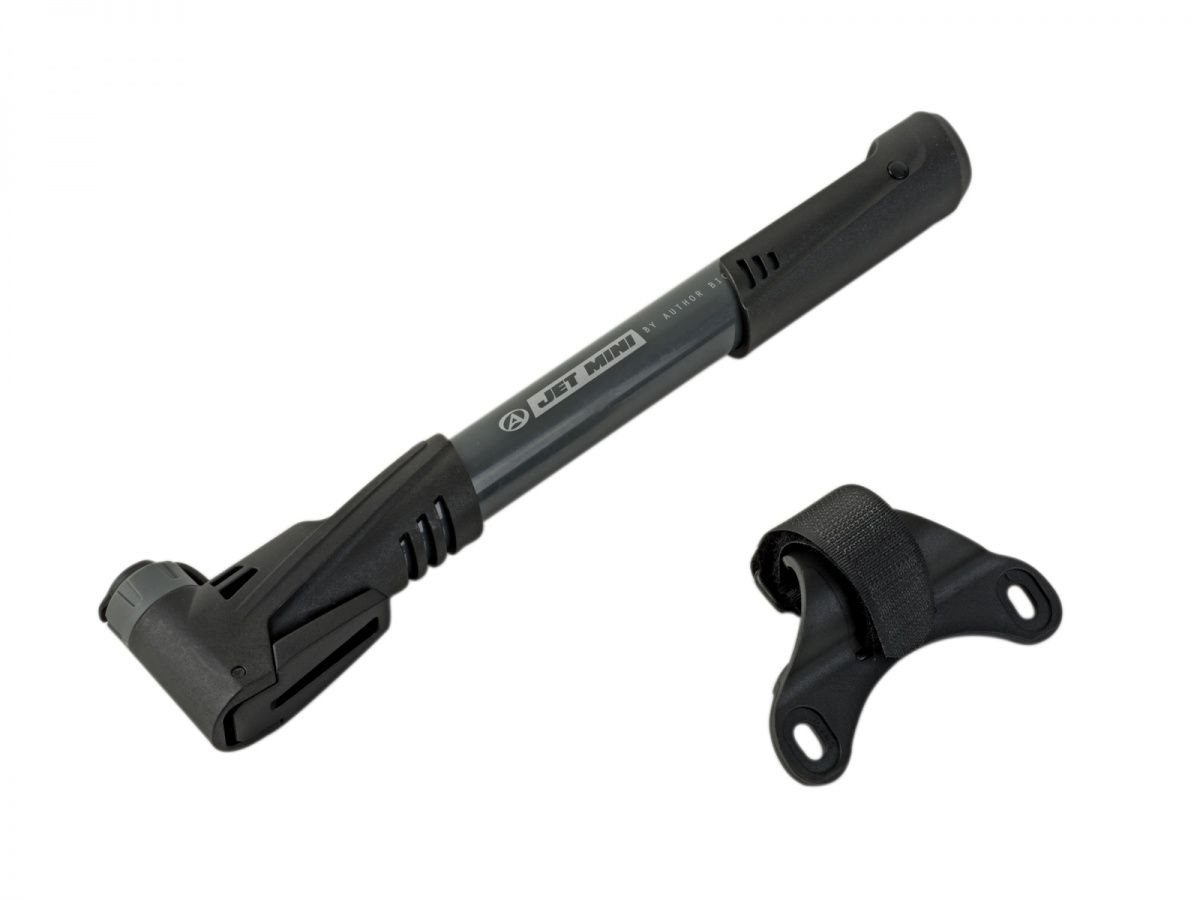 Hustilka AUTHOR Jet Mini Composite poskytuje rychlé a jednoduché nahuštění pneumatik. Nejvyšší dosažitelný tlak je 120 PSI (0,83 MPa). Nová SMART hlava pro snadné použití na galuskový ventil (FV) nebo autoventil (AV). Součástí této lehké kompaktní hustilky je držák, který snadno připevníte do závitových vložek na rámu jízdního kola.