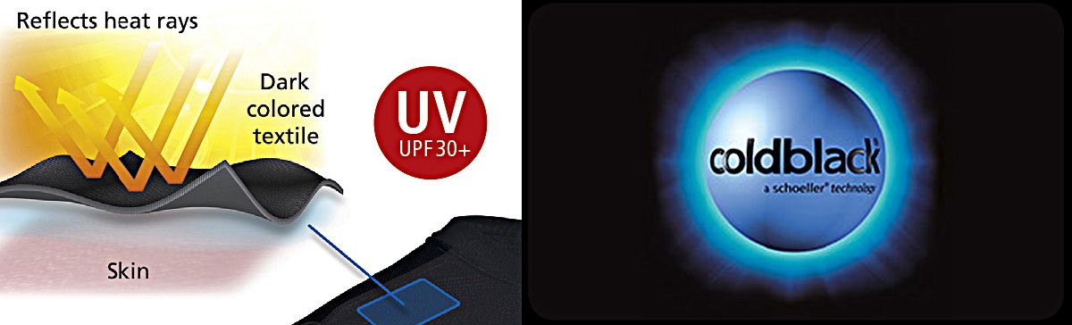 - Carbon Lycra materiál s Coldblack® povrchovou úpravou od firmy Schoeller ®.