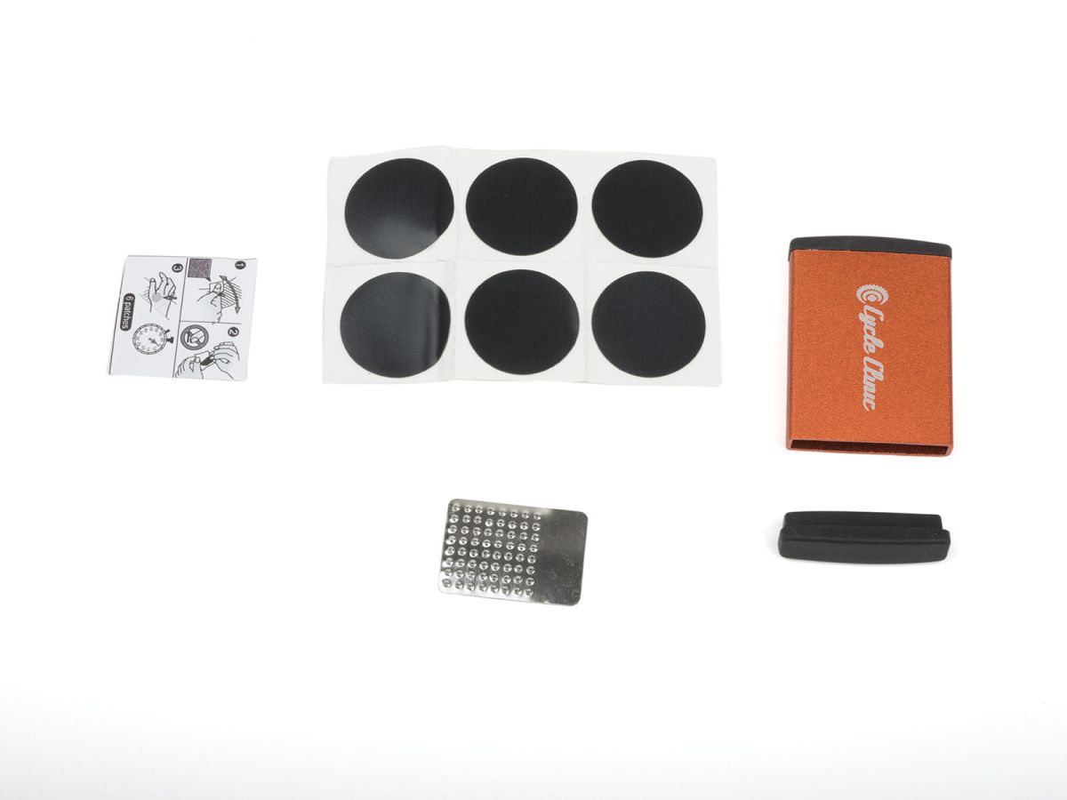 - 6 záplat a AL zdrsňovač v malém vodotěsném AL pouzdru.