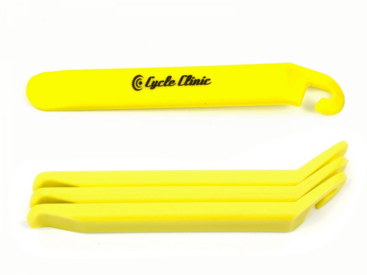 Sada pák CYCLE CLINIC CC TL4 z odolného plastu s nylonovými vlákny. Speciální tvar pák umožňuje snadnou montáž/ demontáž plášťů jízdního kola. Nylonový komposit má vysokou pevnost a odolnost.