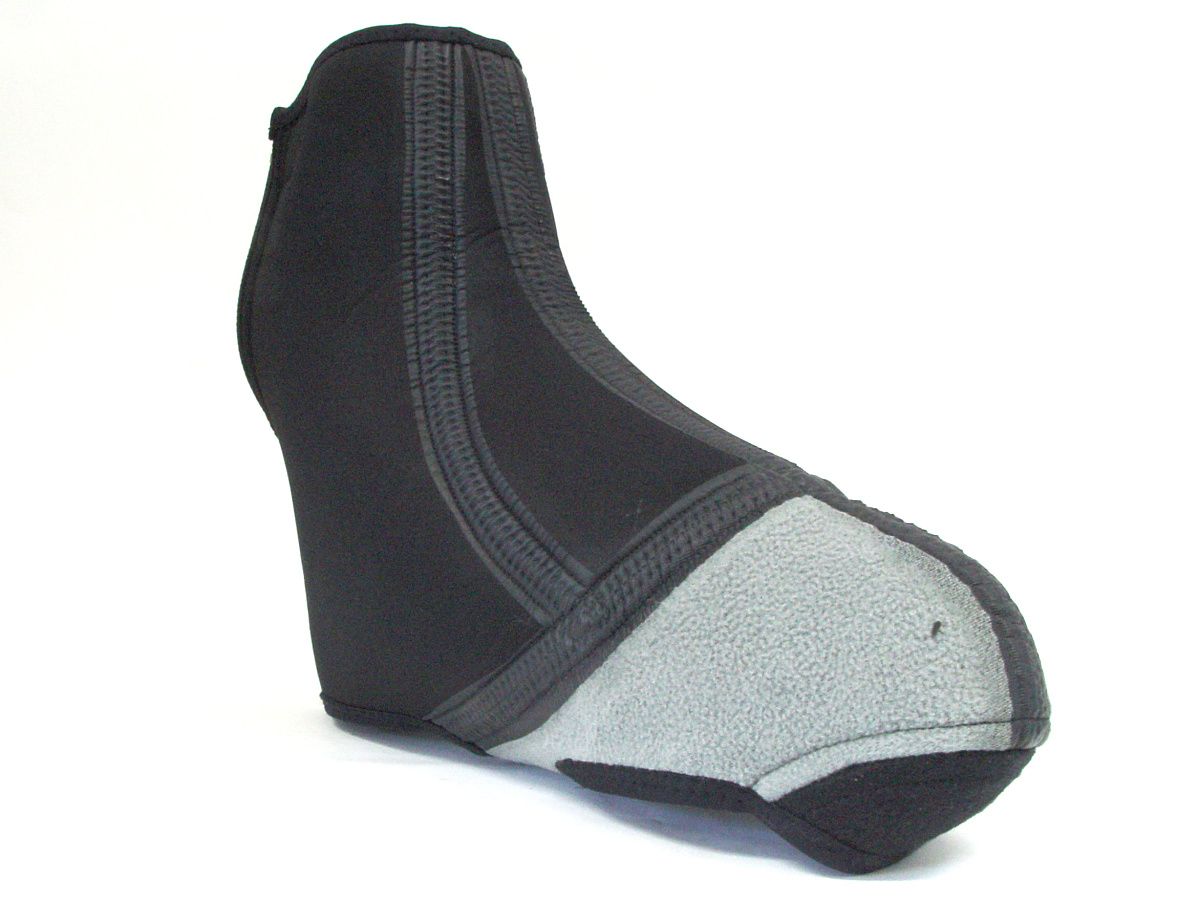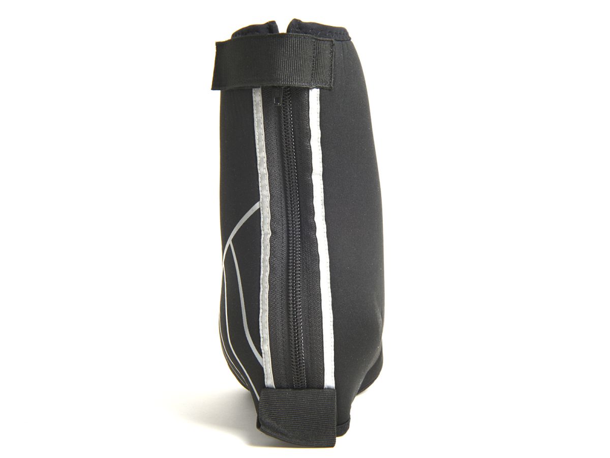 Návleky na tretry z neoprenu (tl. 4 mm), vyztužení spodní části, zapínání na zip se zajištěním na suchý zip, univerzální pro všechny typy pedálů, reflexní nášivky.