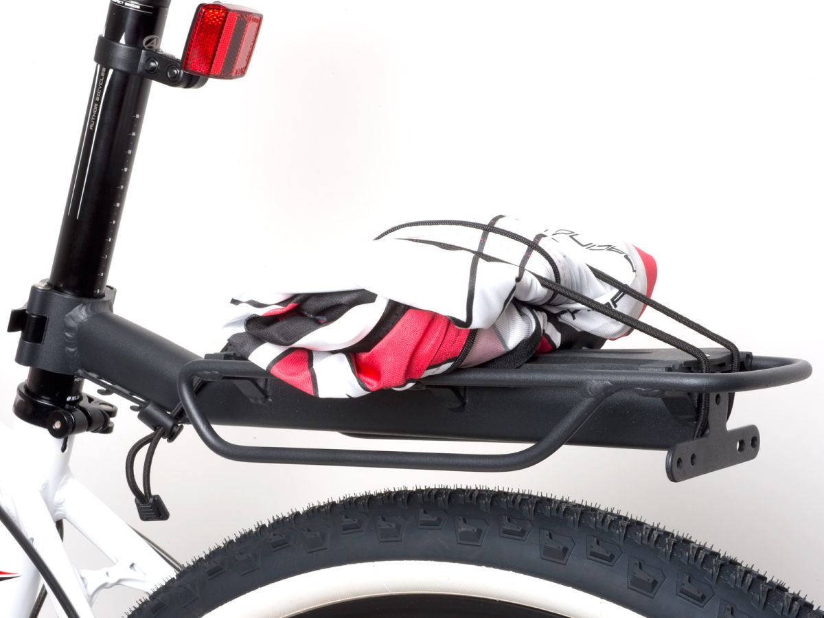 Materiál AL6061, univerzální úchyt na sedlovku d. 25 - 34mm, rychloupínací páčka pro snadnou a rychlou montáž / demontáž. Nosnost nosiče 10kg (nosnost je limitována pevností sedlovky), ložná plocha 29x11cm, hmotnost 730g. Tento nosič vyžaduje odbornou montáž.