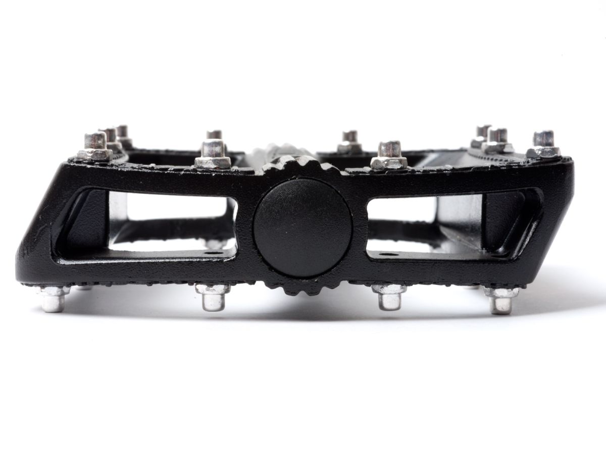 Pedály pro BMX a freestyle MTB, odlehčené tělo, Cr-Mo osa, tělo výkovek z AL 6061, Cr-Mo piny jsou vyměnitelné. Rozměr platformy 112 x 100 x 31 mm, hmotnost 475 g.