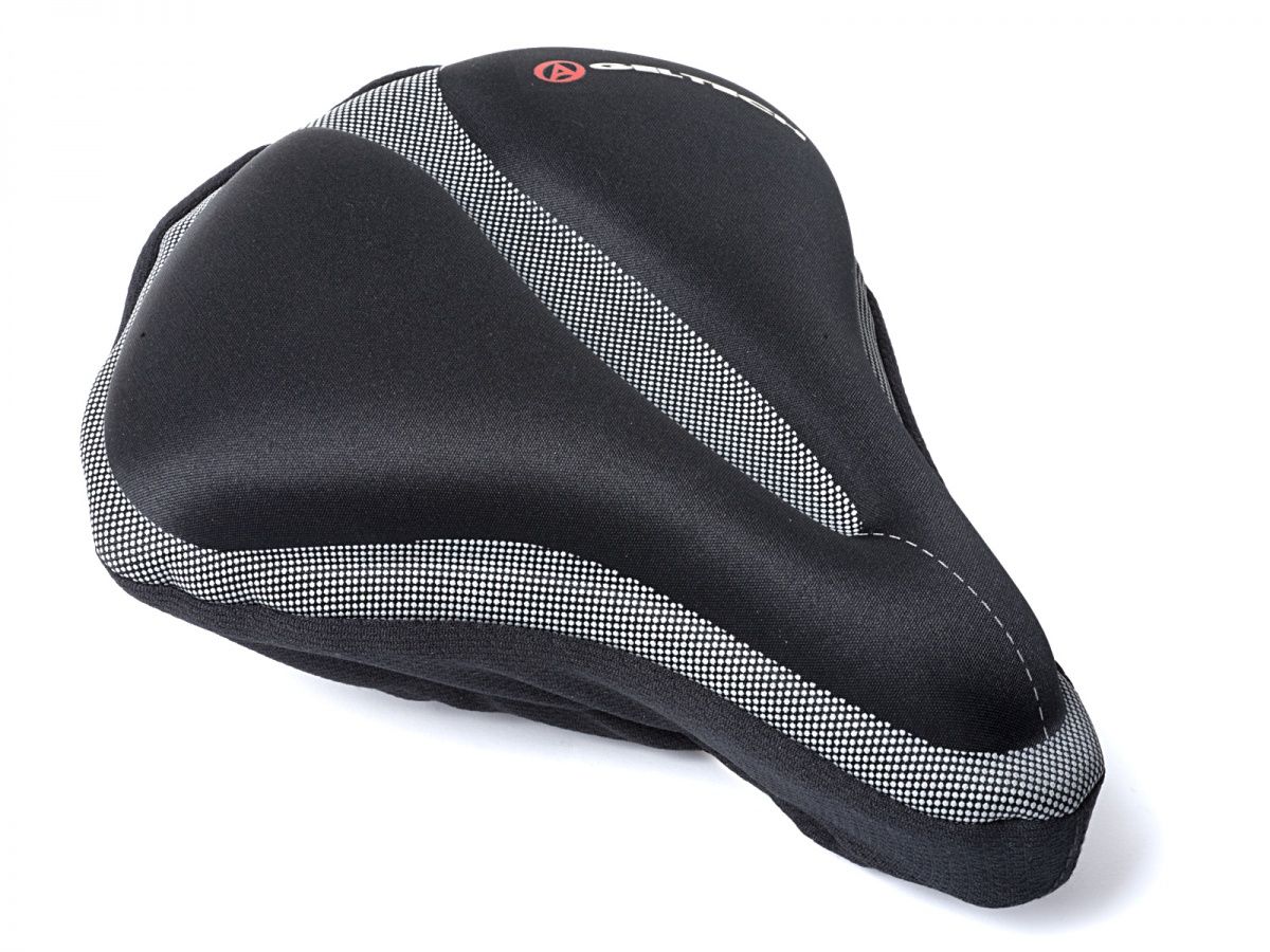 Gelový potah na sedlo, pro komfortní posed na sedle, univerzální elastické uchycení na většinu typů sedel. Rozměry sedací část (L d.26 cm x š.19 cm; XL d.24 cm x š.22 cm).