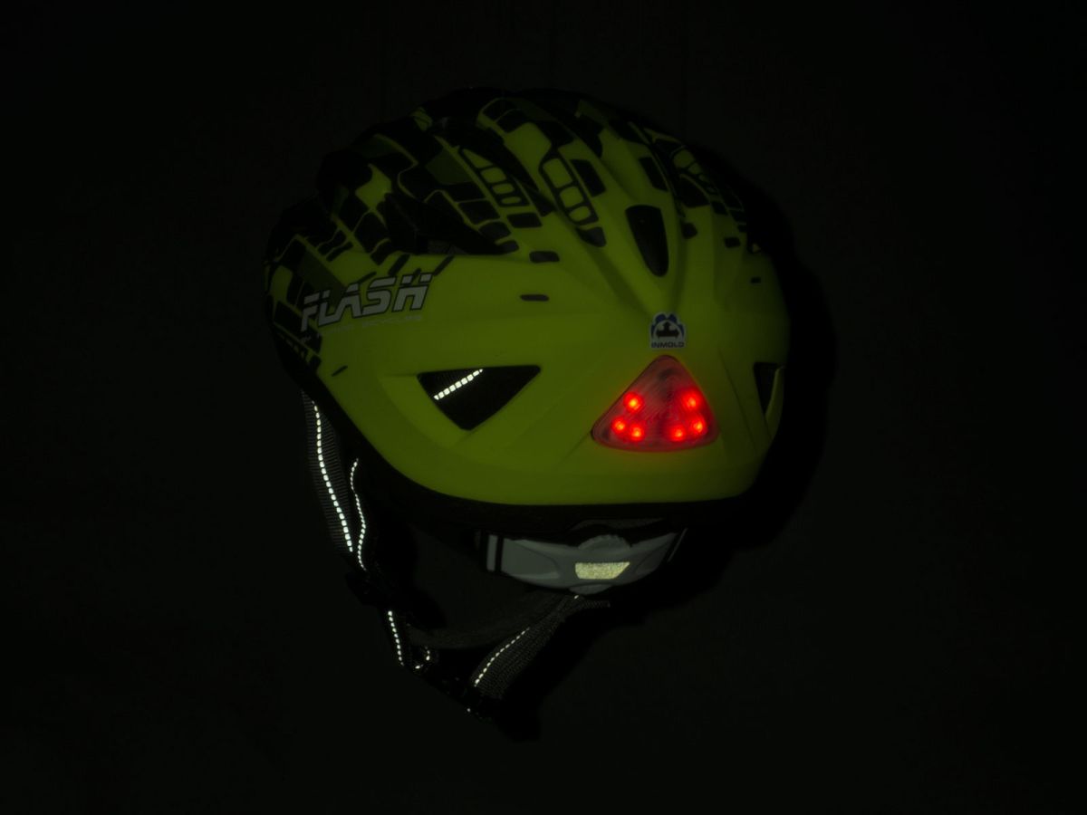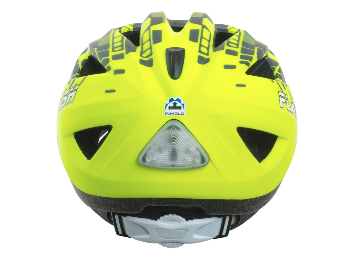 Inmold dětská přilba, s jednoduchým nastavení upínacího systému. Velké otvory se síťkou proti hmyzu zaručují dostatečné odvětrání. Integrovaná blikačka pro vyšší bezpečnost.