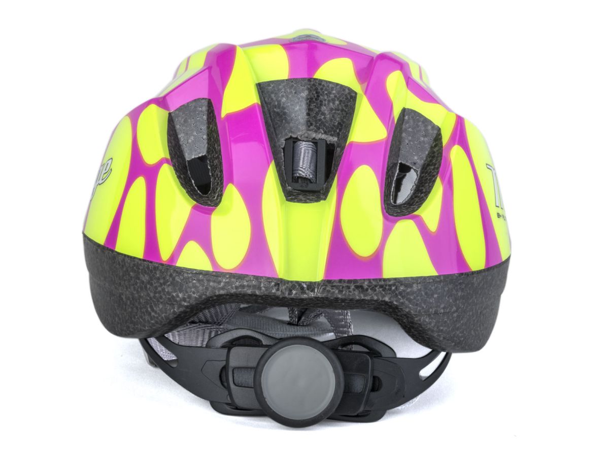 Inmold dětská přilba, s jednoduchým nastavení upínacího systému. Velké otvory se síťkou proti hmyzu zaručují dostatečné odvětrání.