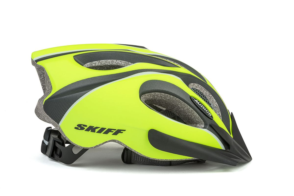 Přilba AUTHOR SKIFF přináší uživateli jízdu v pohodlné, odvětrané a bezpečné přilbě. Vnitřní tvar přilby a větracích otvorů zaručuje dostatečný průchod vzduchu a tím skvělé odvětrání. Přední větrací otvory jsou doplněny síťkou proti hmyzu. Součástí přilby AUTHOR SKIFF je odnímatelný štítek. Upínací systém DialFit s velkým kolečkem pro jednoduché a rychlé nastavení.