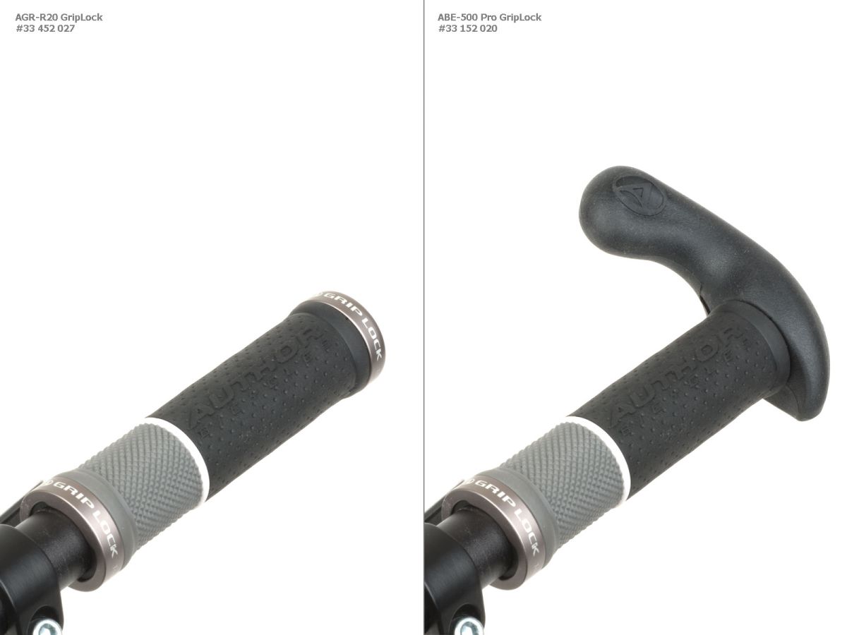 Krátké rohy, ergonomický tvar s měkkým povrchem, speciální vnitřní osazení pro možnost propojení s gripy s pojistnou objímkou řady AUTHOR Grip Lock, Materiál měkčená pryž/ AL6061. Hmotnost 110 g.