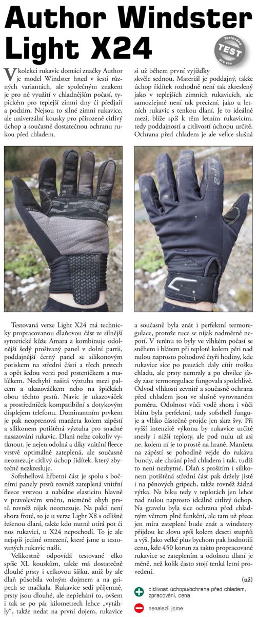 Rukavice AUTHOR WINDSTER LIGHT poskytují maximální úroveň pohodlí a ochrany v chladném počasí. Speciální design dlaňové strany pro dokonalý dotek a vysoký komfort.