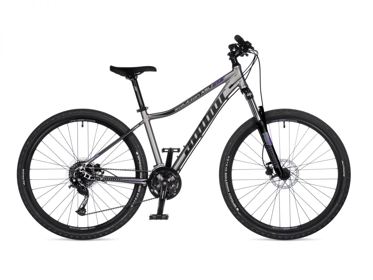 Dámské horské kolo Author Solution 27,5 ASL představuje zlatý střed v nabídce modelů s 27,5“ koly. Disponuje duralovým rámem a uzamykatelnou odpruženou vidlicí RST. O řazení se postará spolehlivá sada Shimano Alivio s tradičním a dlouhodobě osvědčeným počtem převodů 3 × 9. Brzdí se samozřejmě hydraulikou v podání spolehlivých kotoučových brzd Tektro. Výhodou u těchto modelů je i možnost montáže blatníků či nosiče. Nechybí ani příprava zadní stavby na uchycení originálního stojánku Author. Pokud hledáte odolné, skvěle ovladatelné a solidně vybavené kolo na rekreační využití, Author Solution 27,5 ASL bude maximálně vyhovovat.