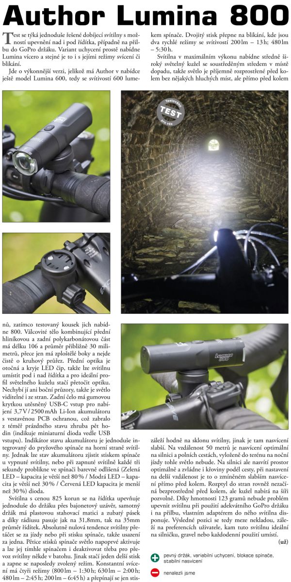 AUTHOR LUMINA 800 lm je dobíjecí světlo, které má velký světelný výkon a zároveň nabídne i dlouhou dobu svícení. Přesně tvarovaný světelný kužel zaručuje výbornou viditelnost a rovnoměrně osvětlenou plochu i v těch nejnáročnějších podmínkách. Celkové zpracování přináší vysokou odolnost proti prachu a vodě (IP65). Velmi praktický LED ukazatel kapacity baterie integrovaný v přepínači.