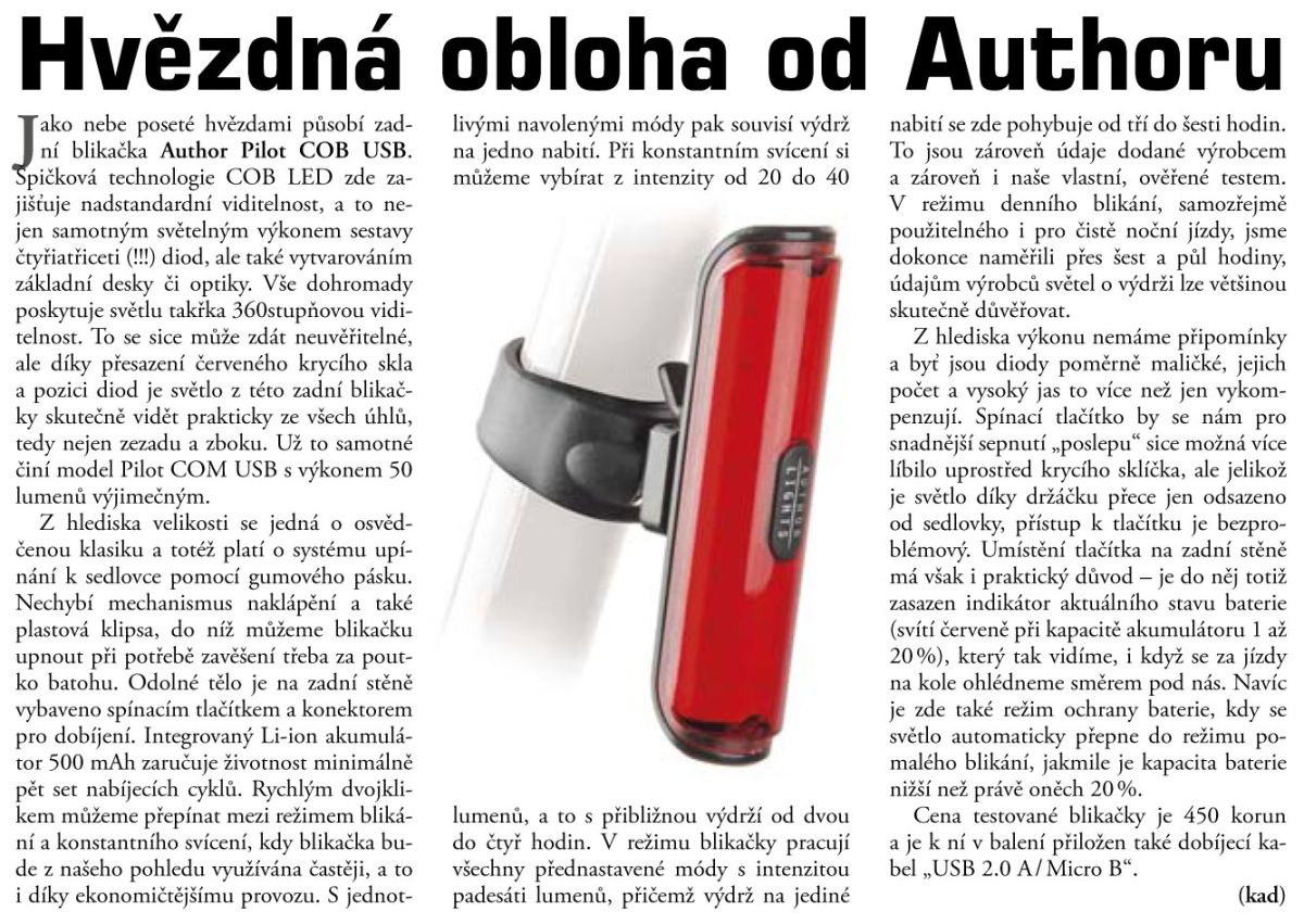 AUTHOR Světlo zad. A-Pilot USB CobLed 50 lm (černá/červené-sklo)