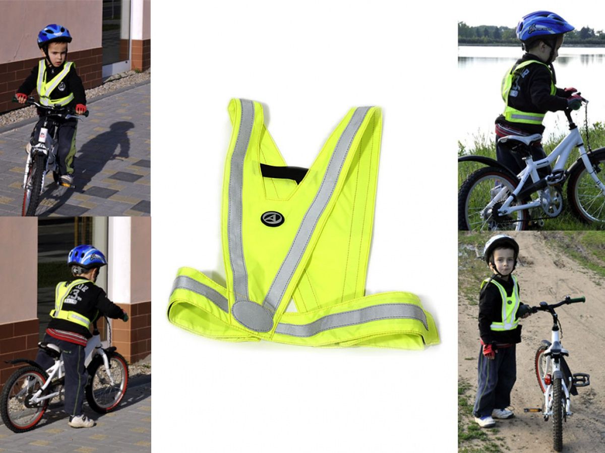 Dětská vesta s reflexními nášivkami, barva signální žlutá, universální velikost (3–10 let) – jednoduché nastavení pomocí suchých zipů.