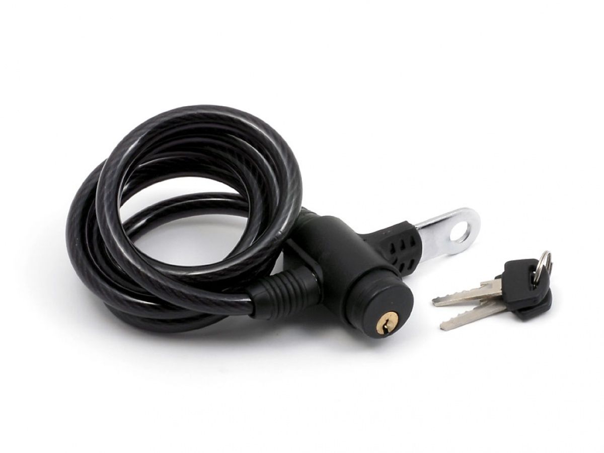 Spirálový zámek s univerzálním držákem na podsedlový RU, lanko ocel l. 1000 mm, 2x klíč.