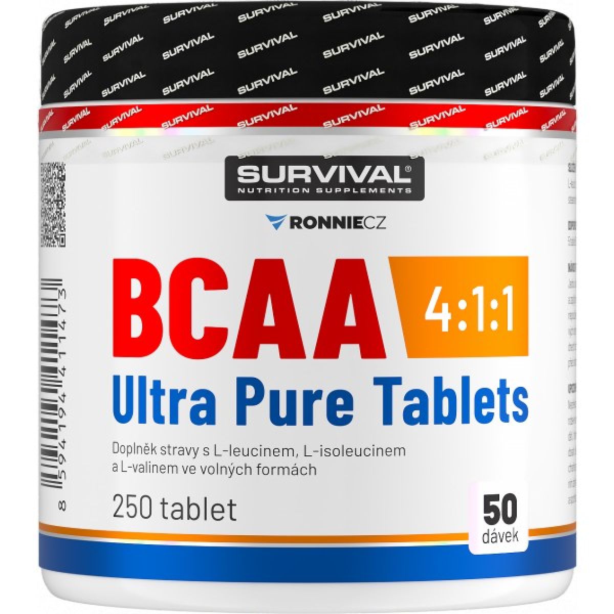 Nové a lepší BCAA 4:1:1 Ultra Pure Tablets značky Survival jsou silné aminokyselinové tablety vyrobené moderní technologií, která umožňuje použití naprostého minima pojivových látek, a to jak co do jejich počtu, tak do jejich procentuálního zastoupení. Získáváte tak produkt, který dodá Vašemu tělu velmi snadno a rychle využitelné volné aminokyseliny a zároveň ho nezatíží žádnými zbytečnými balastními pojivy.