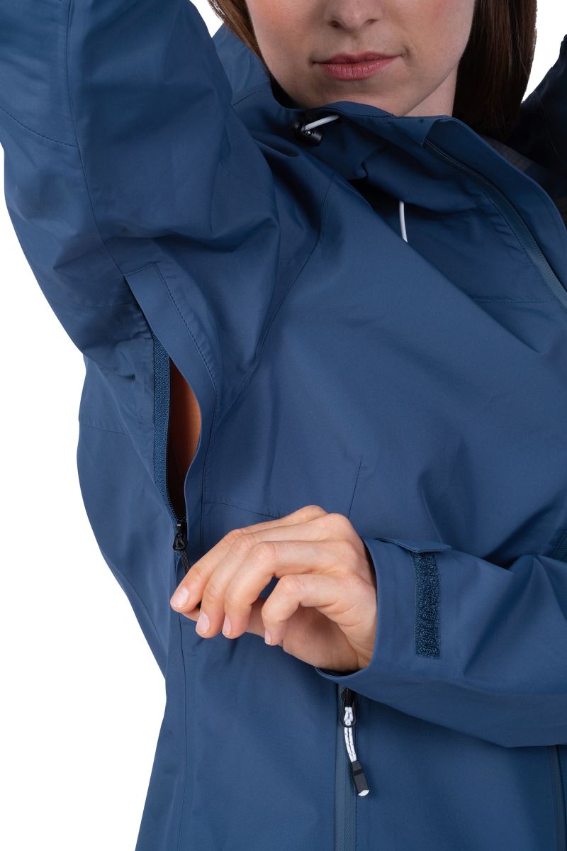 Dámská 3-vrstvá membránová bunda s parametry vodního sloupce a prodyšnosti v hodnotách 10 000. Povrchová úprava DWR - C6 je šetrnější k životnímu prostředí a zajistí vodoodpudivost vrchního materiálu. Skvělá volba pro náročné vysokohorské túry i outdoorové výpravy, jelikož se na ni můžete skutečně spolehnout! Bunda využívá 3-vrstvou technologii funkční neporézní membrány Climatic Element pro poskytnutí nepromokavosti, prodyšnosti a zároveň větruvzdornosti. Vyšší prodyšnost zajistí ventilační zipy v podpaží, kompletně podlepené švy a nepromokavé zipy zase celistvou nepromokavost bundy. Kapuce je nastavitelná ve 2 směrech jednoduchým stažením gumiček, stejně tak jako dolní lem s regulací šířky na bocích. Součástí jsou anatomicky tvarované rukávy zakončené stahováním lepenou patkou na suchý zip. Pohodlný volnější střih předurčuje bundu pro celoroční aktivity na horách, ať už lezete, chodíte nebo třeba lyžujete. Lze totiž zvolit druhou izolační vrstvu od slabší gramáže až po např. péřovou bundu.