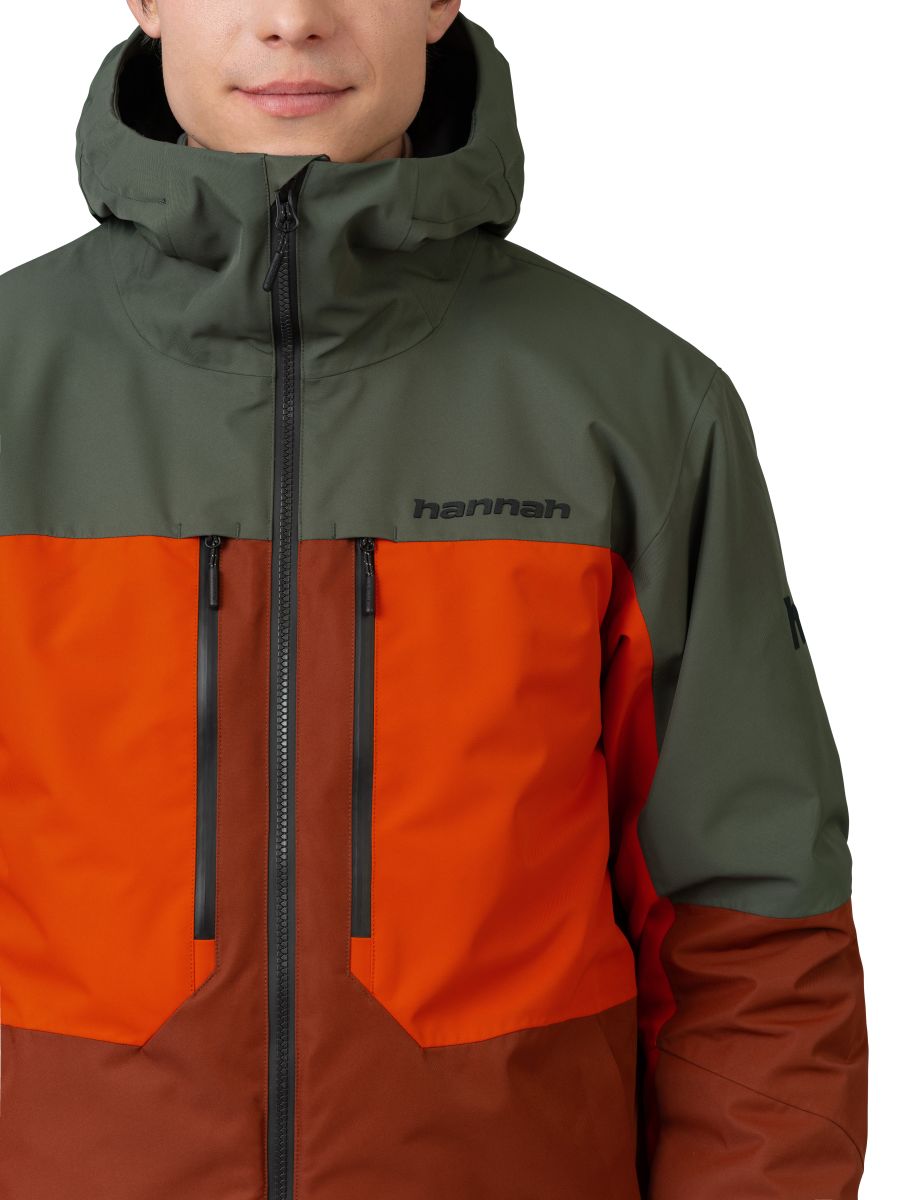 Lyžařská bunda v technickém střihu má pružný materiál ošetřen svrchní vodoodpudivou úpravou. Membrána Climatic Element s parametry 10 000mm vodní sloupec a 10 000 prodyšnost tě spolehlivě ochrání proti promoknutí při zachování prodyšnosti. O tepelnou izolaci se postará materiál Duratherm Pro, který zaručí optimální komfort a funkčnost i za vlhka. Bunda má skvělou výbavu. Od voděodolných YKK zipů na centrálním zipu a hrudních kapsách, dále odvětrání v podpaží, vnitřní systém kapes a sněhový límec v pase. Anatomicky tvarované rukávy s kapsou na zip na skipas jsou zakončené stahováním patkou se suchým zipem. Vnitřní elastické rukávové manžety s otvorem na palec snižují únik tepla a zároveň zajistí, aby sníh zůstal tam kde má. Systém propojení bundy a kalhot umožňuje snadné připnutí lyžařských kalhot Hannah Wiel.