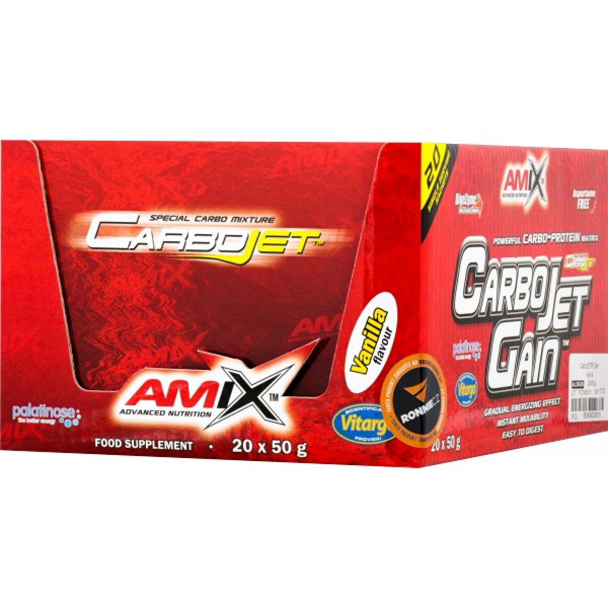 - smíchejte 50 g (1 odměrku) CarboJet Gain s 200 - 250 ml vody nebo nízkotučného mléka