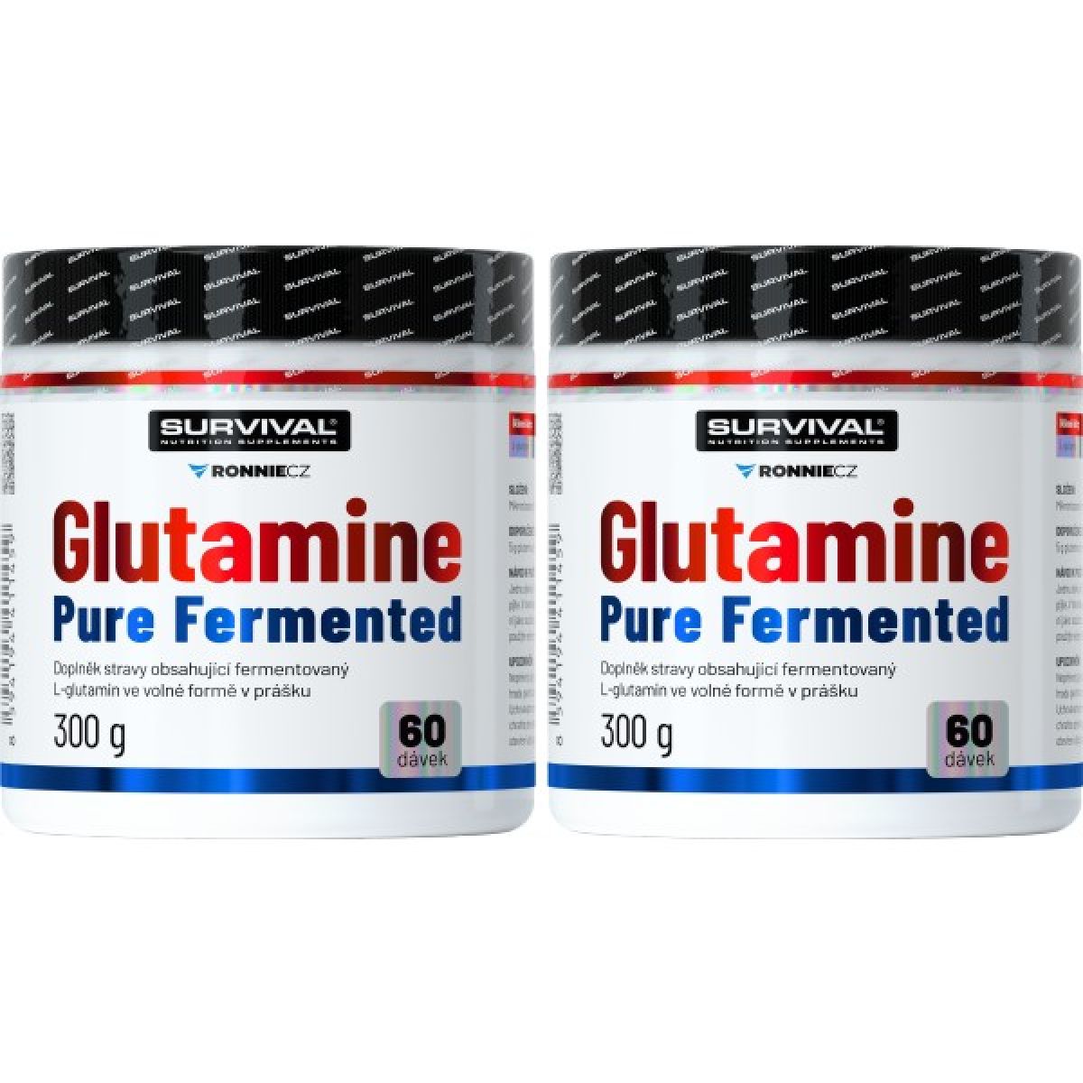 Glutamine Pure Fermented značky Survival nabízí 500gramové a/nebo 300gramové cenově velmi výhodné balení volné formy této semiesenciální aminokyseliny, kterou je zvlášť vhodné používat bezprostředně po tréninku a také večer před spaním. Lze používat v kombinaci s jinými doplňky sportovní výživy.