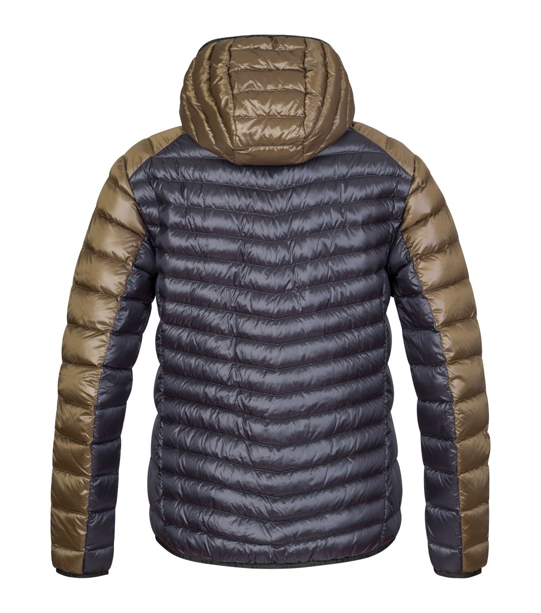 Lehká zateplovací péřová bunda Arden, na první pohled zaujme zajímavým vzhledem struktury materiálu a prošitím. Je vyrobená z materiálu s vysokou hustotou tkaní Airlite DMF s vodoodpudivou úpravou a je komorově plněná kachním peřím s certifikací Bluesign. Bunda má proto široké možnosti využití, přes vysokohorskou turistiku, ferraty, trekking a ostatní aktivní sporty, až po cestování. Bunda se dá jednoduše sbalit do transportního obalu, který vám v batohu nezabere zbytečně moc místa. Na hlavním dvoucestném zipu i na hlavních kapsách najdeme kvalitní YKK zipy. Velká kapuce s vysokým límcem lemovaná gumou a zadním stahováním. Anatomicky tvarované rukávy i spodní okraj jsou také lemované gumou. Vyúžený střih Alpine skvěle sedí.