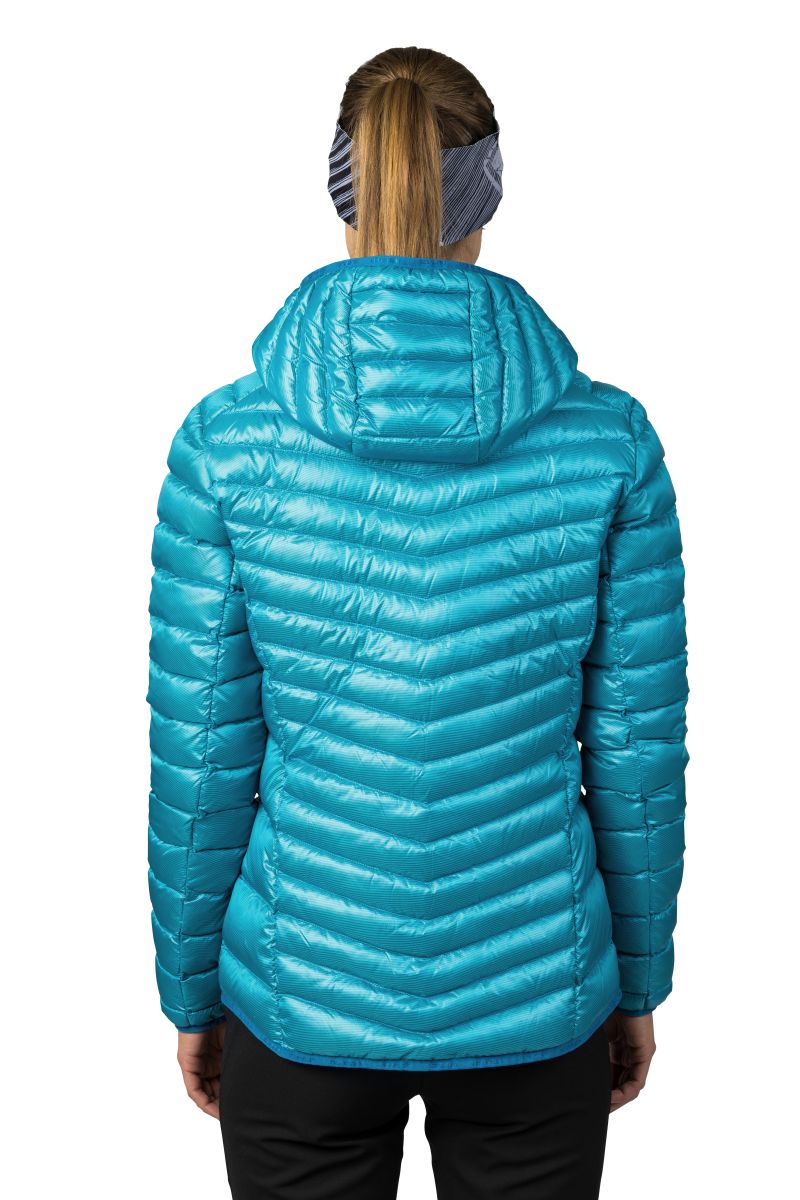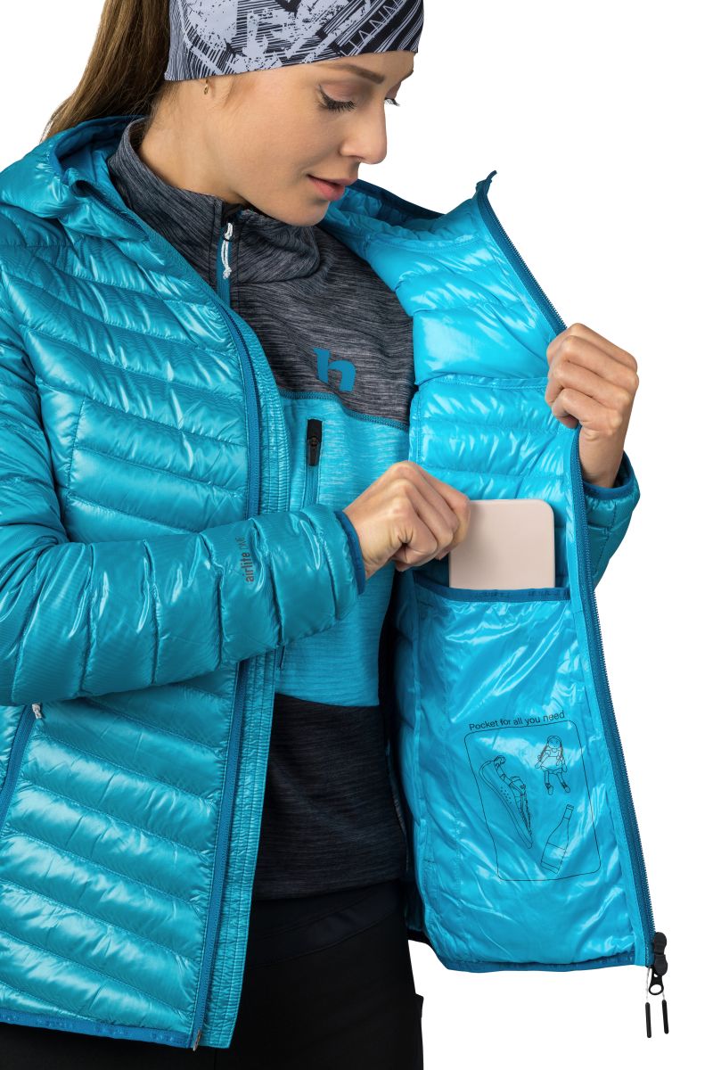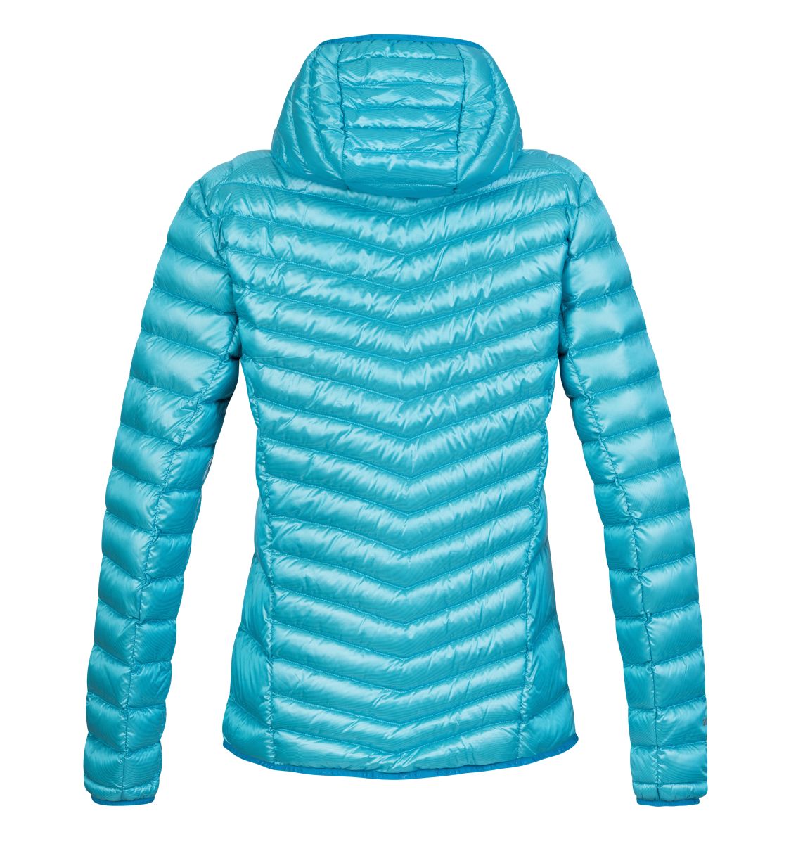Lehká zateplovací péřová bunda Ary, na první pohled zaujme zajímavým vzhledem struktury materiálu a prošitím. Je vyrobená z materiálu s vysokou hustotou tkaní Airlite DMF s vodoodpudivou úpravou a je komorově plněná kachním peřím s certifikací Bluesign. Dekorativní prošití jí dodává elegantní vzhled. Bunda má přinechanou kapuci staženou do gumy s možností regulace. Jsou na ní použity YKK zipy – jak na hlavním dvoucestném reverzními na dvou hlavních předních kapsách. Další praktické kapsy najdete i uvnitř bundy. Alpine fit skvěle sedí a tvaruje postavu a spolu s anatomicky tvarovanými rukávy a spodním okrajem staženými do gumy zaručuje naprostou volnost pohybu. Bunda Ary je lehká a dá se jednoduše sbalit do transportního obalu, což usnadní její přenášení.