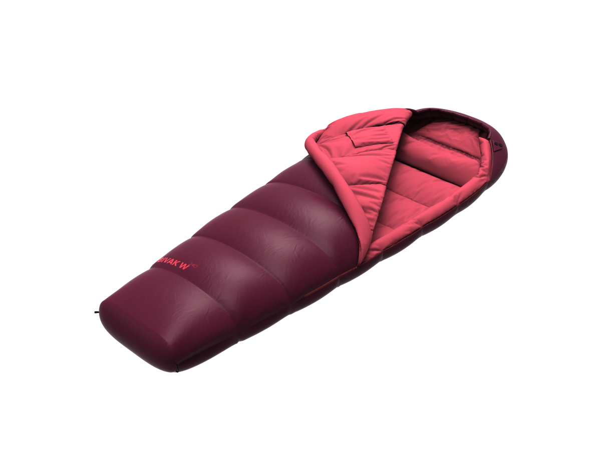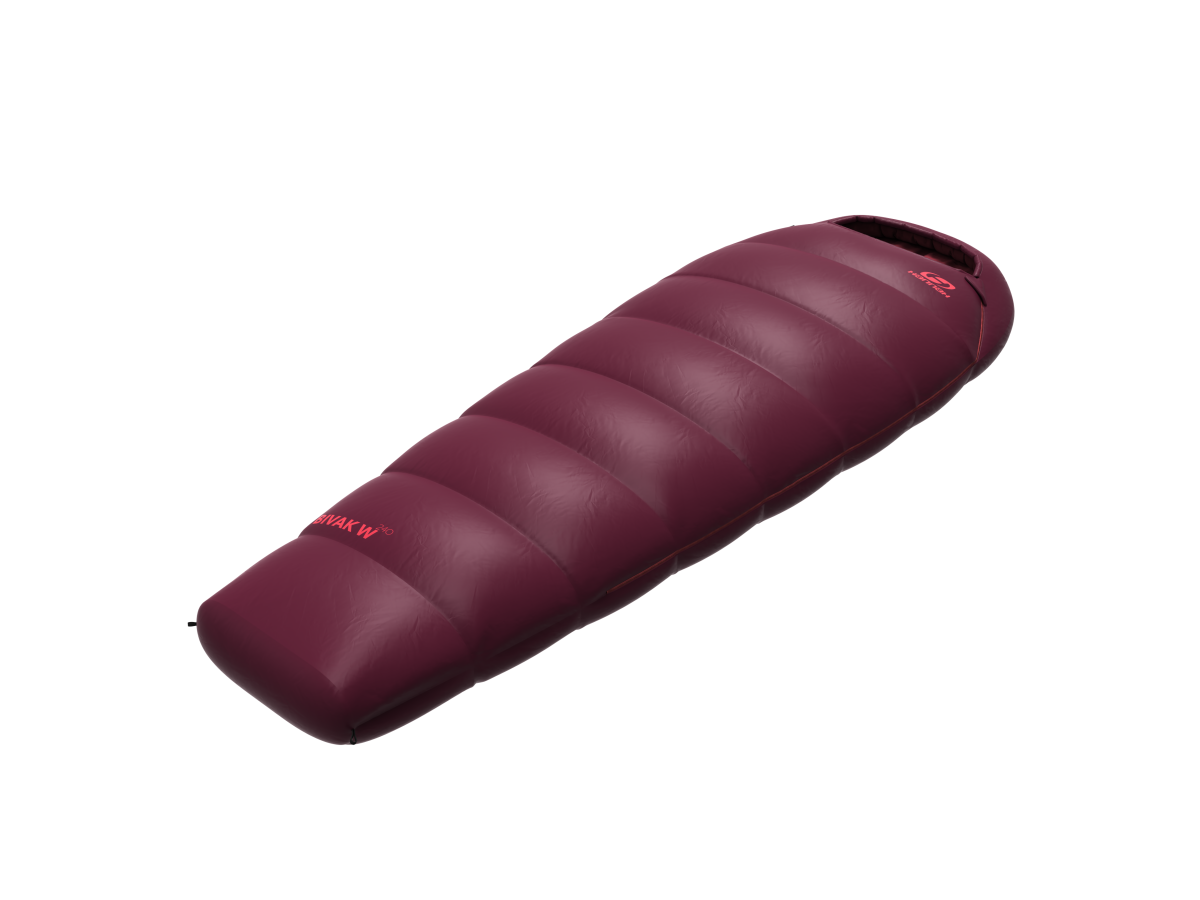 Lehký dámský spací pytel, s minimální objemem po sbalení určený pro pobyty v přírodě, použití v chladném období od podzimu do jara, výplň silikonizovaným dutým vláknem Izotherm Pro, dvouvrstvá konstrukce s prošitím, anatomický střih, uzavřená tvarovaná kapuce, jednou rukou ovladatelné stahování kapuce, vnitřní zateplovací límec s regulací, obousměrný zip krytý légou, vyztužená léga proti zadrhávání zipu, pojistka proti samovolnému rozepínání zipu, poutka na zavěšení, vnitřní kapsa, kapsa na polštář v kapuci, kompresní obal