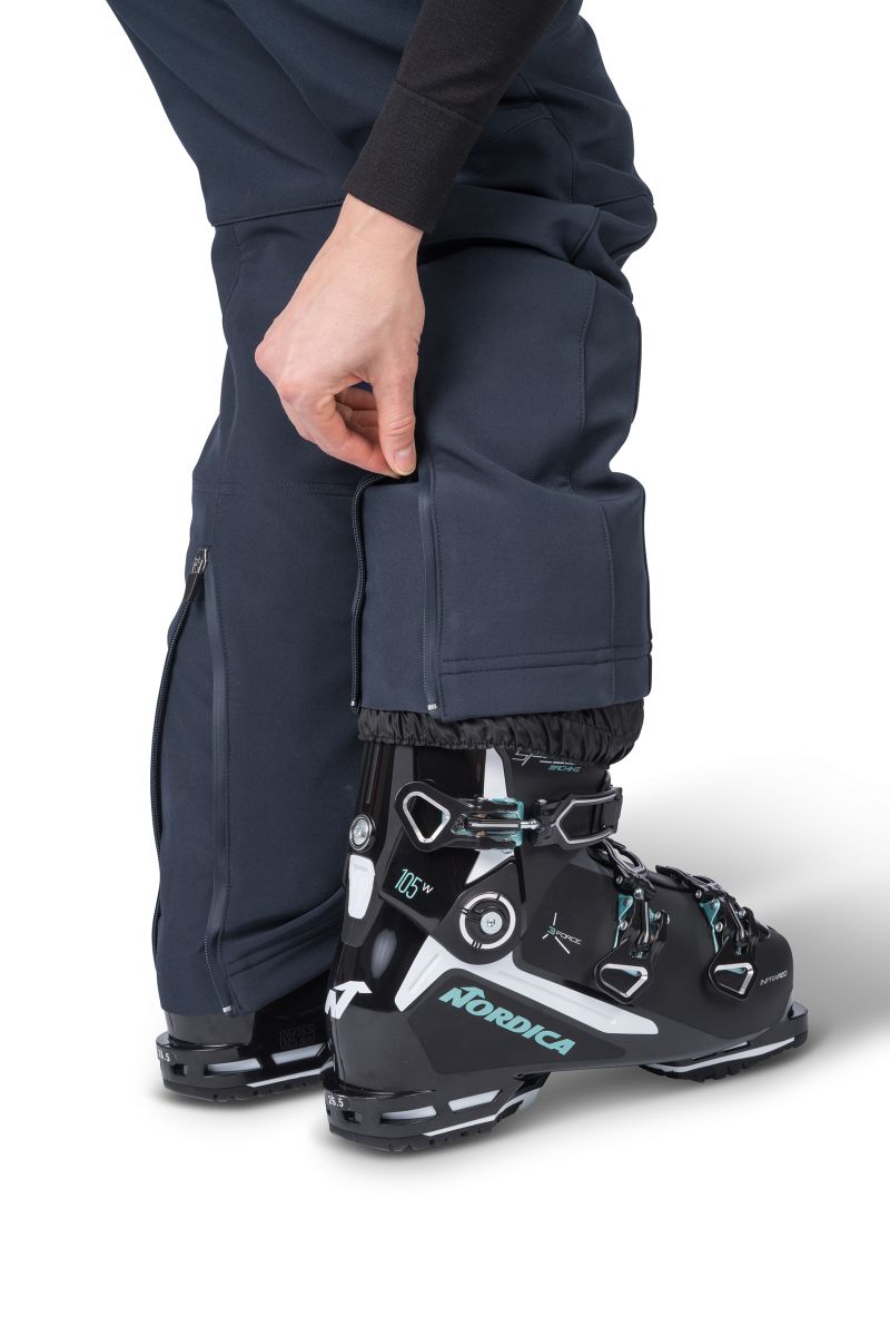 Elegantní dámské softshellové lyžařské kalhoty, které se perfektně hodí k některým našim lyžařským modelům, které mají elegantní prvky. Příjemný strečový materiál výborně obepne postavu, a přitom vám dopřeje dokonalou volnost pohybu. V nohavici je umístěna sněhová manžeta, na konci nohavice pak naleznete rozparek na zip.