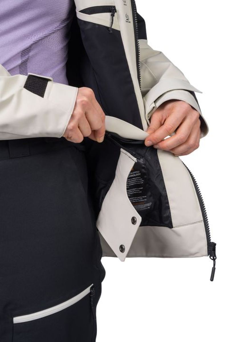 Technický střih lyžařské bundy je ideální pro lyžařky kombinující sjezdovku a volný terén poblíž lanovky. Membrána Climatic Active s parametry 20 000mm vodní sloupec a 20 000 prodyšnost tě spolehlivě ochrání proti promoknutí při zachování vysoké prodyšnosti. O tepelnou izolaci se stará špičková výplň Primaloft Silver, která má k poměru nízké gramáže vysokou hřejivost. Bunda je vyladěná ve všech detailech od kompletně voděodolných YKK zipů přes lepené rukávové patky a kšilt, anatomicky tvarované rukávy s vnitřní elastickou rukávovou manžetou s otvorem na palec, Recco pasivní záchranný lavinový systém, sněhový límec v pase, vnitřní systém kapes až po vnitřní zateplený límec. Technologickým benefitem je použitý systém efektivního zateplení, které je aplikované v trupu, horní části rukávů, ramen a límci, spodní část rukávů a dolní část trupu je bez zateplení. V bundě tak pocítíte mnohem větší pohyblivost, celkovou lehkost, ale díky kvalitní Primaloft výplni zůstanete v komfortu. Systém propojení bundy a kalhot umožňuje snadné připnutí lyžařských kalhot Hannah Soren. Bunda má strečový materiál, který zvyšuje komfort při nošení a svobodu pohybu.