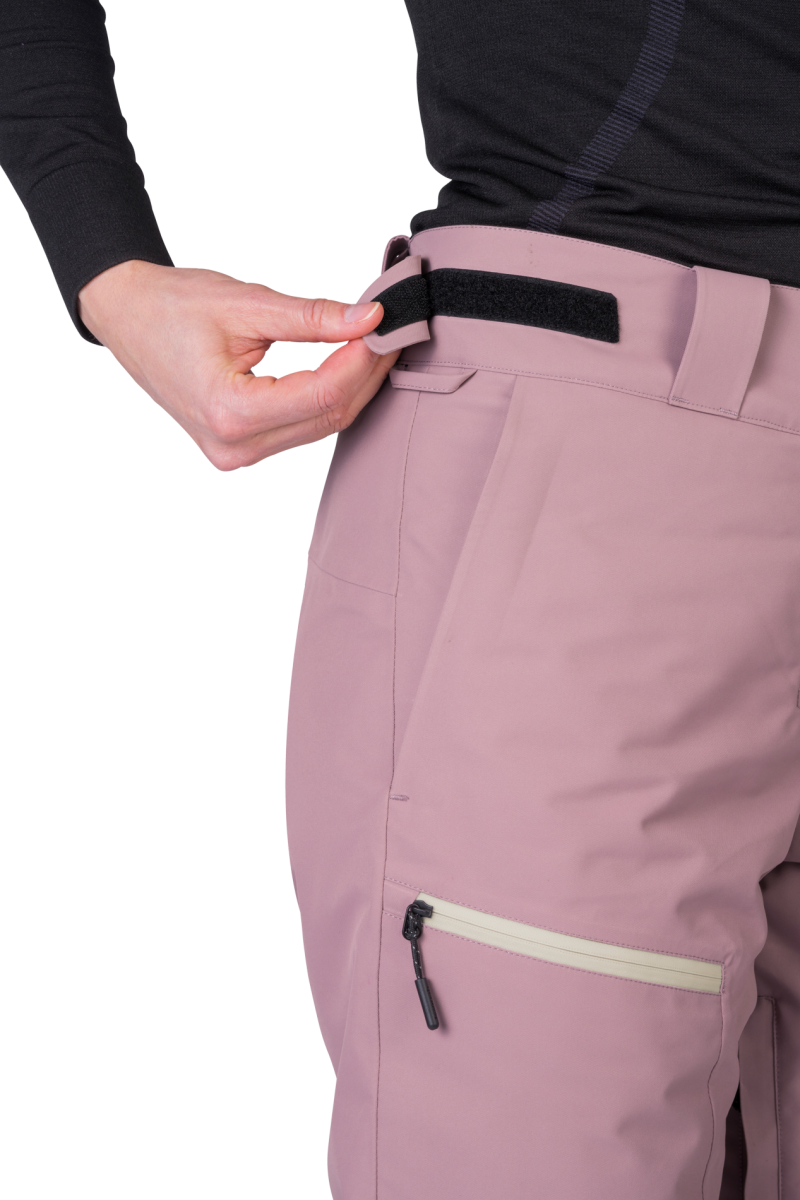 Lyžařské zateplené kalhoty s membránou Climatic Element s parametry 10 000mm vodní sloupec a 10 000 prodyšnost tě spolehlivě ochrání proti promoknutí při zachování prodyšnosti. O tepelnou izolaci se postará materiál Duratherm Pro, který zaručí optimální komfort a funkčnost i za vlhka. Technický střih kalhot má regulovatelný obvod pasu páskem s gumou na suché zipy. Zvýšený sed má v zadní části poutka pro možnost propojení kalhot s bundou Hannah Saliva či Hannah Noren. Kalhoty mají natvarovaná kolena, 2 hlavní kapsy na zip a 2 stehení kapsy na zip. Ventilaci podpoří na vnitřní straně nohavic odvětrání na zip, které je kryté lepenou légou. Dolní část nohavic má rozparek na zip pro lepší převléknutí přes lyžařské přeskáče. Vnitřní sněhová manžeta v nohavici zajistí, aby sníh zůstal vně nohavice. Třešničkou je 3D logo na pravé stehenní kapse.