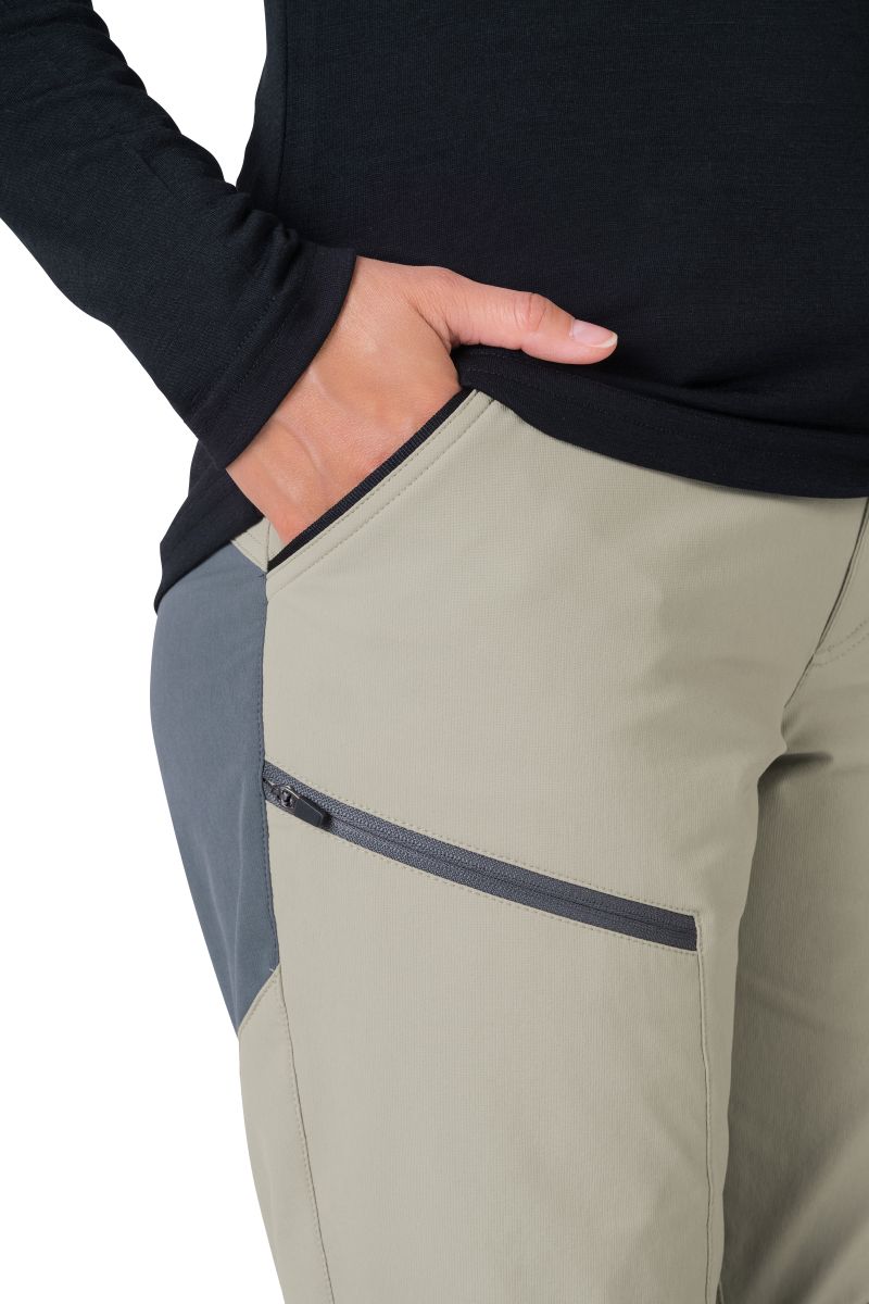 Dámské technické outdoorové kalhoty jsou navrženy pro maximální odolnost a pohodlí při náročných aktivitách v přírodě. Vyrobeny jsou z materiálu AFT Double Weave Pro, který je mechanicky odolný, větruvzdorný, trvale vodoodpudivý a zároveň prodyšný. Povrchová úprava DWR (Durable Water Repellent) - C0 bez PFC zajišťuje, že kalhoty nepropustí vodu, a přitom jsou šetrné k životnímu prostředí.