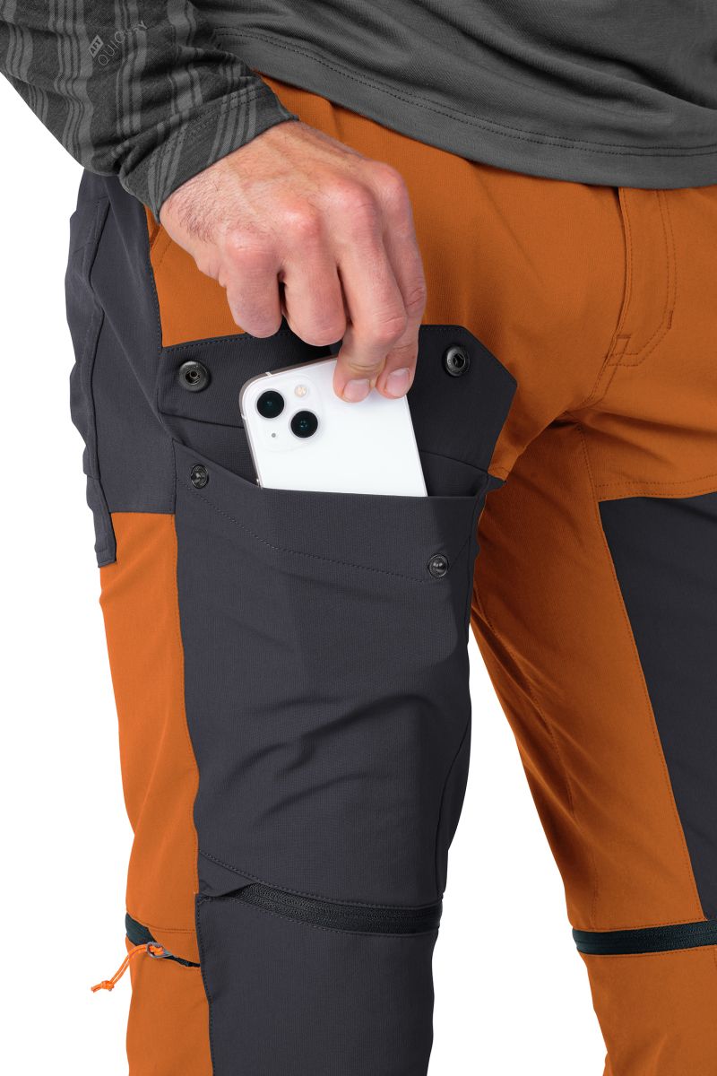 Pánské odepínatelné technické outdoorové kalhoty jsou vyrobeny z mechanicky odolného, větruvzdorného, trvale vodoodpudivého a prodyšného materiálu AFT Double Weave Pro. Povrchová úprava DWR - C0 bez PFC je šetrnější k životnímu prostředí a zajistí nenasákavost vrchního materiálu. Technický střih kalhot má šikmo řešené odepínatelné nohavice s bočním rozepínáním na zip. Odepnutím nohavic jsou z kalhot rázem parádní šortky s délkou lehce nad kolena. Šortky přesahují zip, což zamezuje případnému škrábání zipu. Nohavice mají anatomicky tvarovaná kolena a spodní kraj s regulací šířky na patent, který se přizpůsobí různé botě a potřebám. Kalhoty mají regulovatelnýobvod pasu páskem a disponují kombinací různých typů kapes v přední i zadní části kalhot. V přední části jsou dvě dostatečně hluboké a pohodlné kapsy, na stehnech dvě kapsy na zip. V zadní části pak kalhoty disponují dvěma níže posazenými hlubokými kapsami, které kromě praktické funkce mají i funkci designovou. Nový materiál AFT Double Weave Pro klade kromě již zmíněných technických parametrů důraz na aspekt udržitelné výroby. Materiál je navíc ošetřen povrchovou vodoodpudivou úpravou, která je bez fluorkarbonů, a tím je šetrnější k životnímu prostředí (PFC free). Certifikace Bluesign je zárukou transparentnosti a využití zdrojů šetrných k životnímu prostředí při výrobě. Kalhoty jsou ideální na vícedenní turistiku a náročný pohyb v horách.