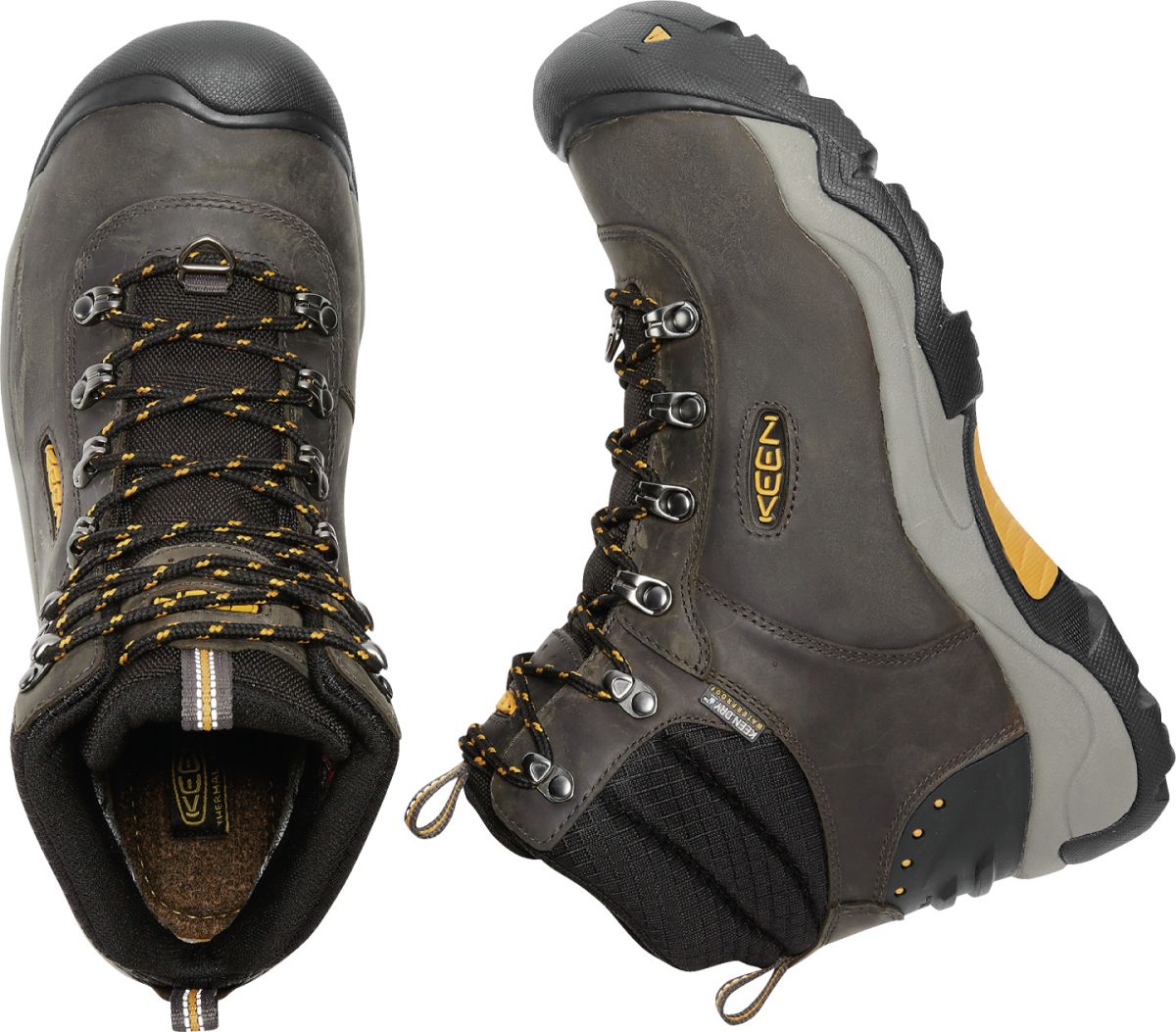Revel jsou velmi oblíbené zimní zateplené boty pro všechny náročné vyznavače zimního trekingu. Tyto boty jsou ideální nejen pro turisty, ale i pro všechny ostatní, kteří pracují v zimním terénu. Třeba vlekaři ocení, že neuklouznou ani na zmrzlém sněhu díky speciální zimní podešvi s velmi hlubokým vzorkem. Proti nepříznivým klimatickým podmínkám vás dokonale ochrání kožený svršek z ekologicky zpracované silné kůže opatřené PFC free impregnací. Prodyšná, ale voděodolná membrána zaručí vašim nohám sucho i v mokrém sněhu. O teplo se postará patentovaná technologie, která využívá vzduchové kanálky ukryté v mezipodešvi, kde se zadržuje teplý vzduch ohřátý vašimi chodidly. Společně se zimní, vrstvenou vložkou a celkovým zateplením boty materiálem KEEN.WARM, vyrobeným z recyklovaného PET materiálu, si užijete přírodu i v krutém mrazu. Technologie: KEEN.DRY; ECO ODOR CONTROL; KEEN.WARM; KEEN.Polar Traction; KEEN.HEAT TRAPOLATOR; PFC FREE REPELENT