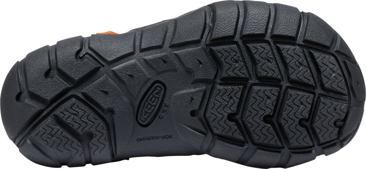 Skvělé a velmi populární dětské sandály Keen Seacamp II CNX pro všestranné využití jsou vyrobeny technologií KEEN.CNX. To znamená, že se jedná o nízkoprofilovou univerzální letní botu inspirovanou minimalistickým stylem obouvání. Nízký profil boty umožňuje přirozený pohyb nohy v maximálním rozsahu, zároveň však poskytuje chodidlu dostatečnou míru bezpečí, včetně patentované ochrany prstů. Model vyniká především nízkou hmotností. Svršek je z pevné polyesterové popruhoviny doplněné o rychleschnoucí podšívku. Anatomicky tvarovaná stélka z materiálu EVA zajišťuje podporu klenby chodidla a pohodlí při celodenním nošení. Kvalitní gumová podešev s vícesměrným vzorkem dobře přilne i k mokrému povrchu. Rychlozavazovací systém umožňuje snadné nazutí a rychlé upevnění na noze, které navíc ještě doplňuje pásek přes nárt se zapínáním na suchý zip. Boty jsou ošetřeny přírodní antibakteriální technologií ECO ODOR CONTROL proti zápachu a dají se prát v automatické pračce.