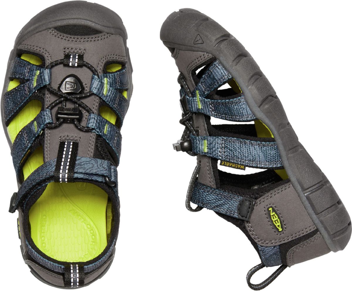 Skvělé a velmi populární dětské sandály Keen Seacamp II CNX pro všestranné využití jsou vyrobeny technologií KEEN.CNX. To znamená, že se jedná o nízkoprofilovou univerzální letní botu inspirovanou minimalistickým stylem obouvání. Nízký profil boty umožňuje přirozený pohyb nohy v maximálním rozsahu, zároveň však poskytuje chodidlu dostatečnou míru bezpečí, včetně patentované ochrany prstů. Model vyniká především nízkou hmotností. Svršek je z pevné polyesterové popruhoviny doplněné o rychleschnoucí podšívku. Anatomicky tvarovaná stélka z materiálu EVA zajišťuje podporu klenby chodidla a pohodlí při celodenním nošení. Kvalitní gumová podešev s vícesměrným vzorkem dobře přilne i k mokrému povrchu. Rychlozavazovací systém umožňuje snadné nazutí a rychlé upevnění na noze, které navíc ještě doplňuje pásek přes nárt se zapínáním na suchý zip. Boty jsou ošetřeny přírodní antibakteriální technologií ECO ODOR CONTROL proti zápachu a dají se prát v automatické pračce.
