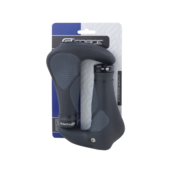 gelová madla FORCE s rohy a zátkamijištěné hliníkovou objímkou s logem FORCEvnitřní průměr: 22,2 mmvýška rohů od osy po vrch: 75 mmužitková délka madla: 102 mmcelková délka: 150 mmhmotnost 1 páru: 305 gbaleno na kartě FORCE