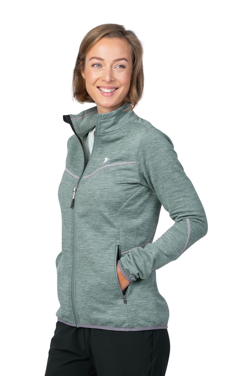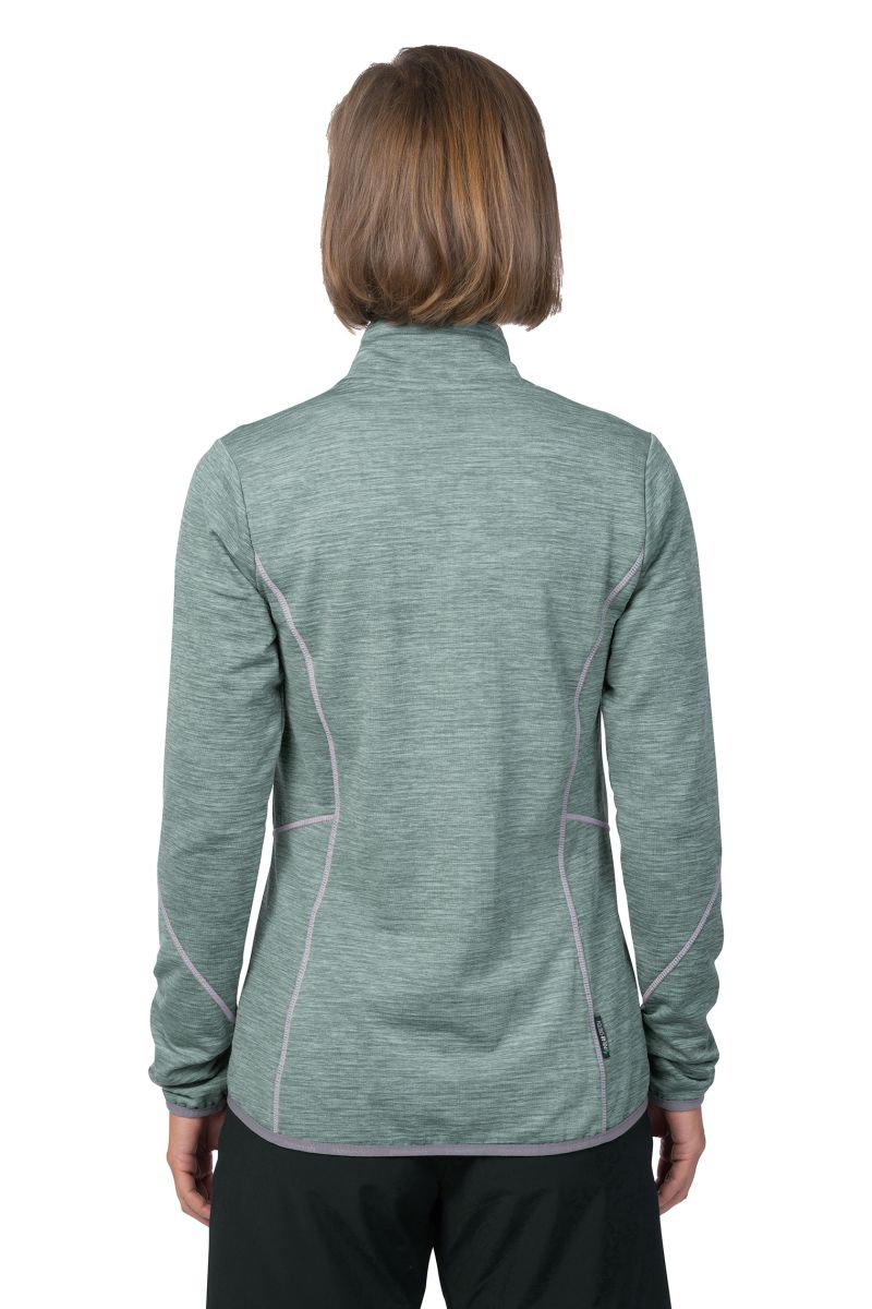 Dagnys je dámská mikina určená pro pohodlné trávení volného času, na treky i ostatní aktivní sporty. Rukávy i spodní okraj mikiny jsou lemované gumou. Je vyrobena ze strečového, lehkého materiálu Polarstretch Grid, který díky své speciální struktuře, kdy je na vnitřní straně produktu pomocí kanálků procházejícími tkaninou vytvořena mřížka, efektivně odvádí vlhkost, zvyšuje prodyšnost a zlepšuje teplotní vlastnosti produktu. Vypasovaný Alpine fit, dekorativní prošití a melanžový materiál z ní dělají opravdu zajímavý a slušivý kousek. Mikina má rukávy i spodní okraj lemované gumou, reverzní hlavní zip se stojáčkem a dvě přední kapsy na zip.