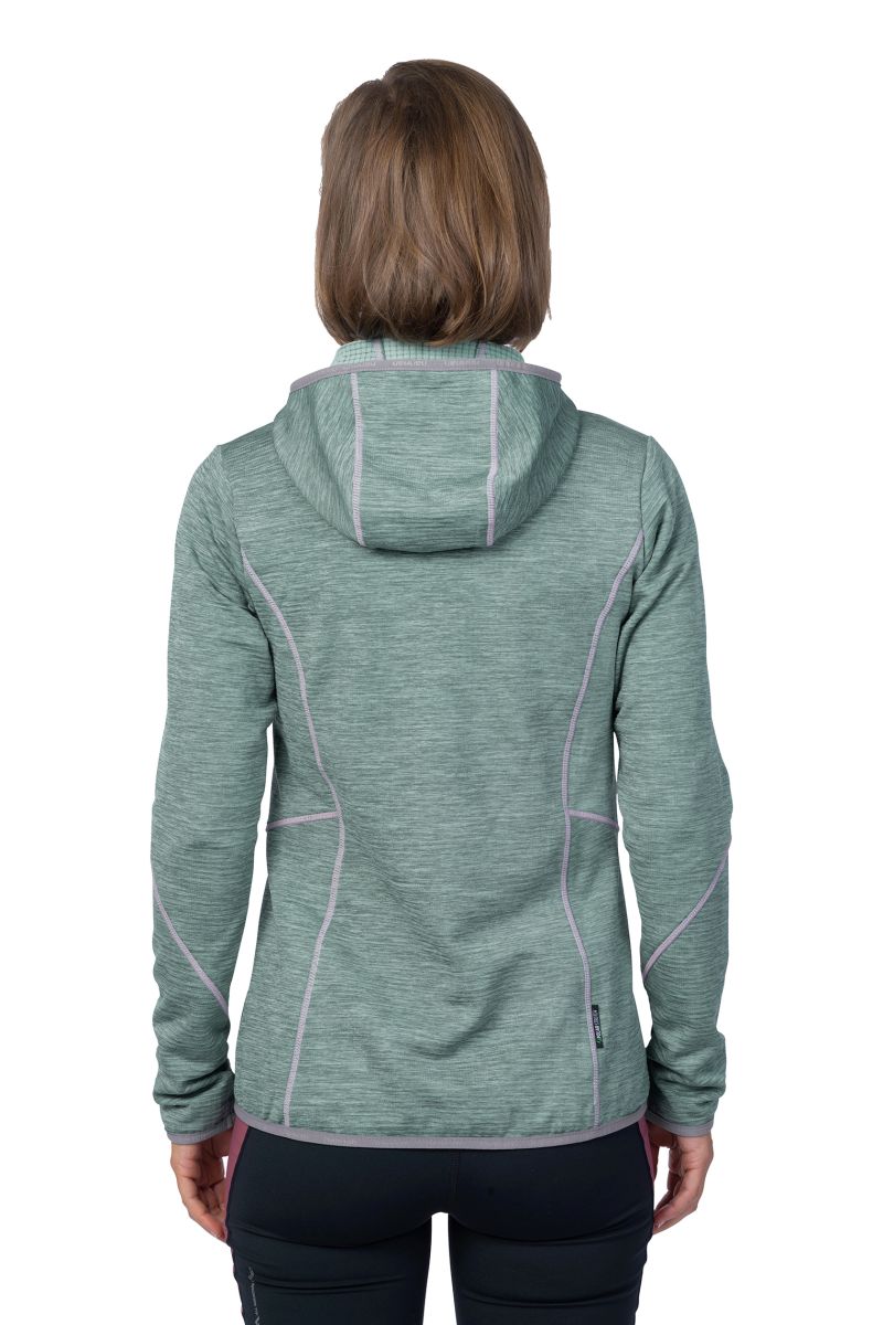 Dámská mikina s kapucí a dekorativním prošitím Dagnys Hoody je ideální pro trávení volného času, ať vyrazíte na trek nebo za jiným aktivním sportem. Strečový a lehký materiál Polarstretch Grid díky své speciální struktuře, kdy je na vnitřní straně produktu pomocí kanálků procházejícími tkaninou vytvořena mřížka, efektivně odvádí vlhkost, zvyšuje prodyšnost a zlepšuje teplotní vlastnosti produktu. Mikina je opravdu slušivá díky vypasovanému střihu Alpine fit, dekorativnímu prošití a melanžovému materiálu. Kapuce, rukávy i spodní okraj jsou lemované gumou a mikina má reverzní hlavní zip a přední kapsy na zip.