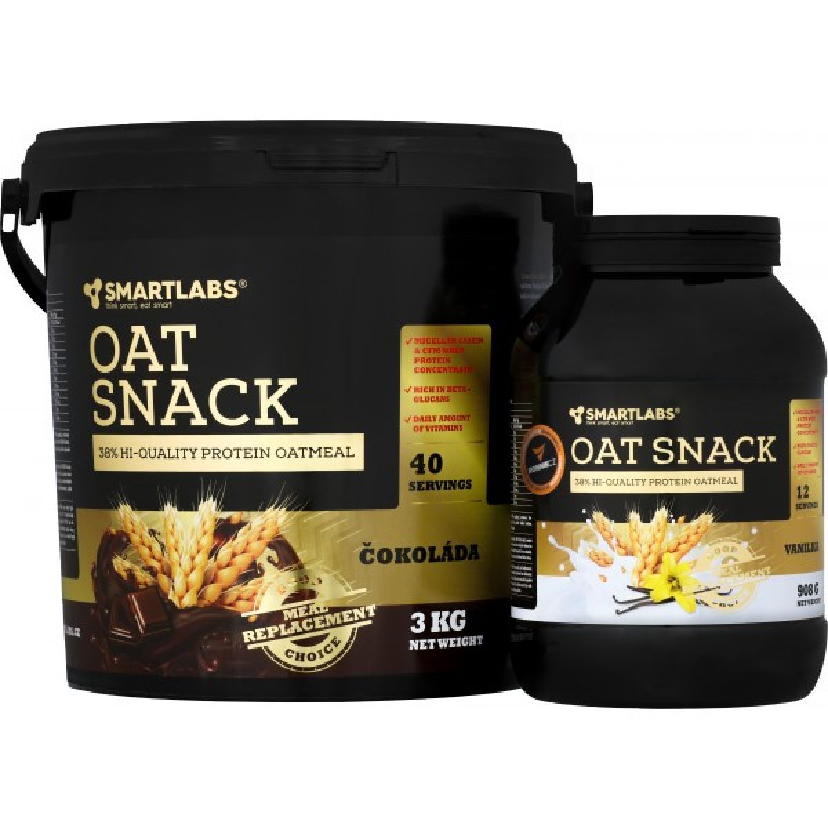 Druhou bílkovinnou složkou je pomalu se vstřebávající micelární kasein, který zajistí přívod aminokyselin (25 - 50 % nad normální úroveň) do organismu až po dobu 8 hodin a zabrání tak odbourávání svalových bílkovin. Oat Snack je unikátní výrobek pro pomalé uvolňování energie ze sacharidů do krevního séra. Toho je dosaženo přidáním ovesných vloček, které mají nižší GI (glykemický index) než většina sacharidů nacházejících se v běžné stravě. Díky nízkému GI nedochází k prudkému vyplavení inzulínu. Krevní cukr se tak drží na vyrovnaných hodnotách. Ovesné vločky jsou zdrojem kvalitních sacharidů - prochází minimálním potravinářským zpracováním. Mají také vyšší obsah vlákniny, která pozitivně upravuje chod trávicí soustavy. Oat Snack je dále obohacen o vitamíny a minerální látky, to vše bez umělých barviv a sladidel.