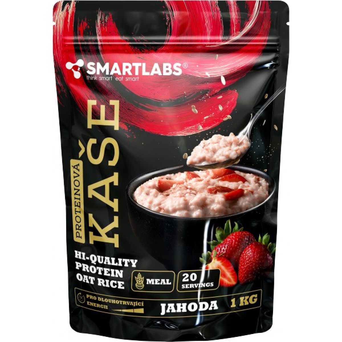 - rýžová mouka, BIO ovesná mouka, BIO panela (šťáva z cukrové třtiny), CFM syrovátkový proteinový koncentrát, micelární kasein, lyofilizované jahody, aroma
