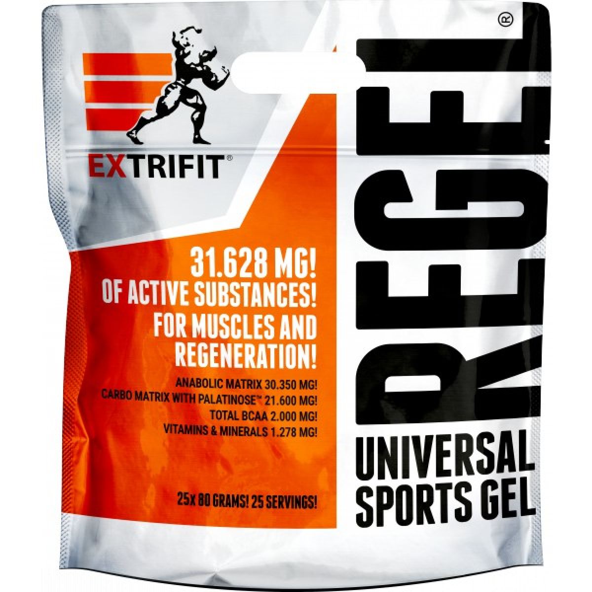 Lámali jste si někdy hlavu nad tím, jaké všechny látky a v jakém množství máte dávkovat pro urychlení regenerace po tréninku? Jaké přijímat sacharidy, jak dávkovat aminokyseliny nebo kolik užívat glutaminu a kreatinu pro odvrácení katabolismu po tréninku? Firma Extrifit vyslyšela tyto Vaše časté dotazy! Regel je dokonale sestaveným komplexem všech látek, které sportovec nutně potřebuje doplnit v průběhu a po skončení tréninku! Regel obsahuje pečlivě vyvážený poměr tří druhů sacharidů a volných aminokyselin, anabolizéry, dvě formy kreatinu a komplex vitamínů a minerálních látek. A to vše ve formě hotového gelu připraveného k okamžité konzumaci.